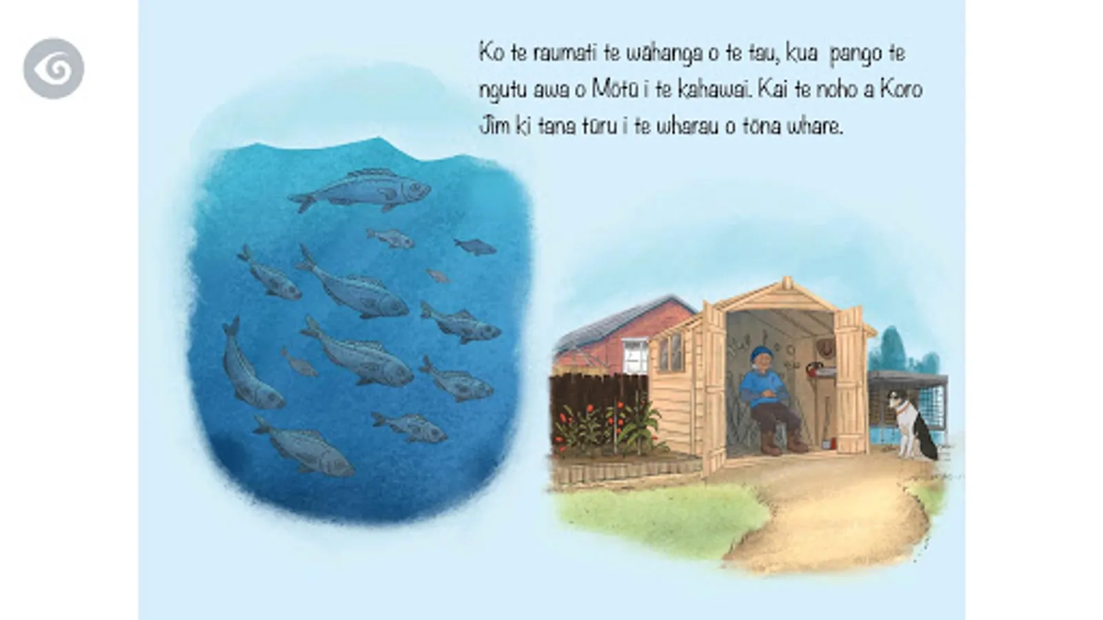 Koro Jim has many tales for his moko, and this one is of fishing, and the sea.