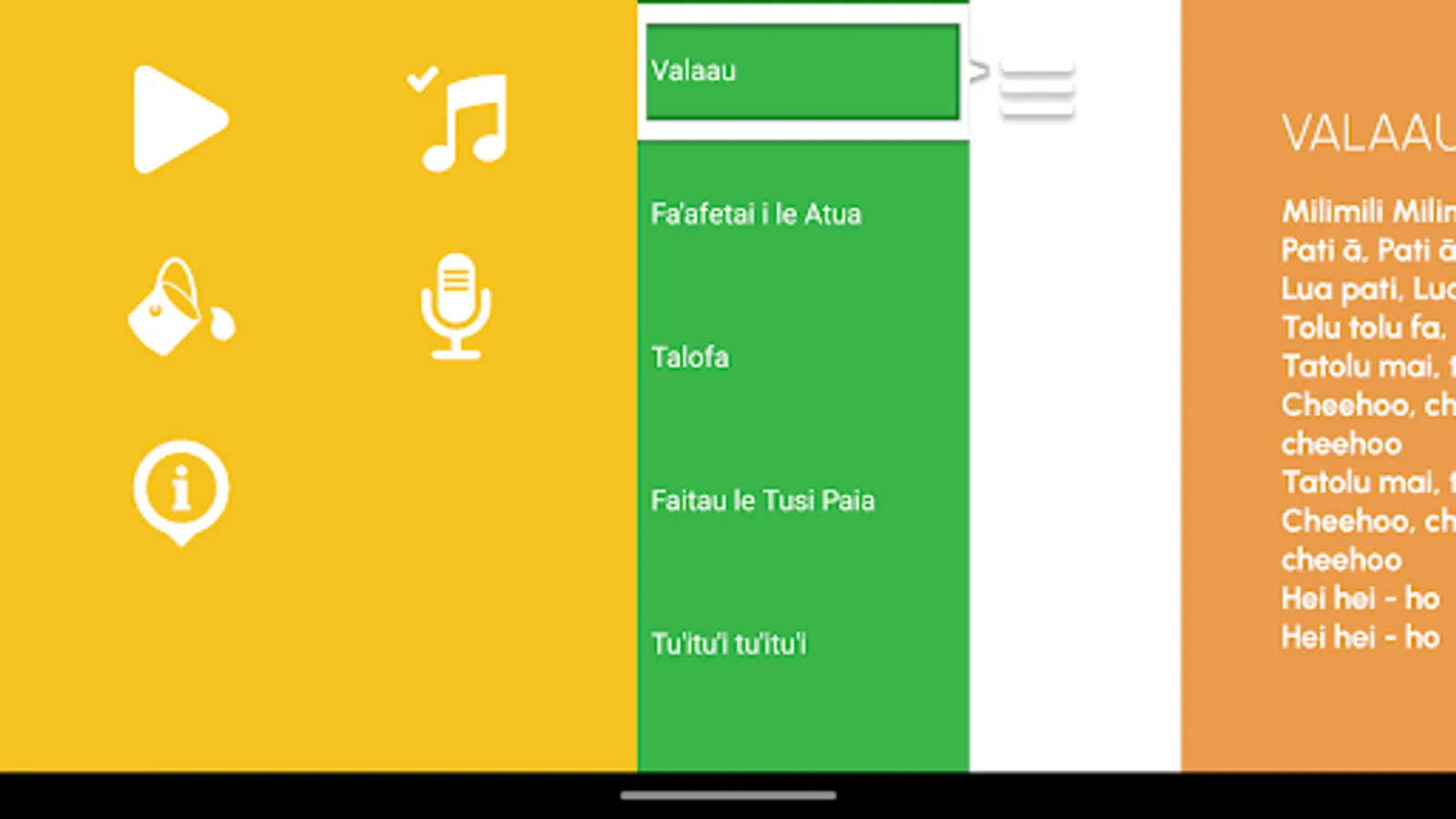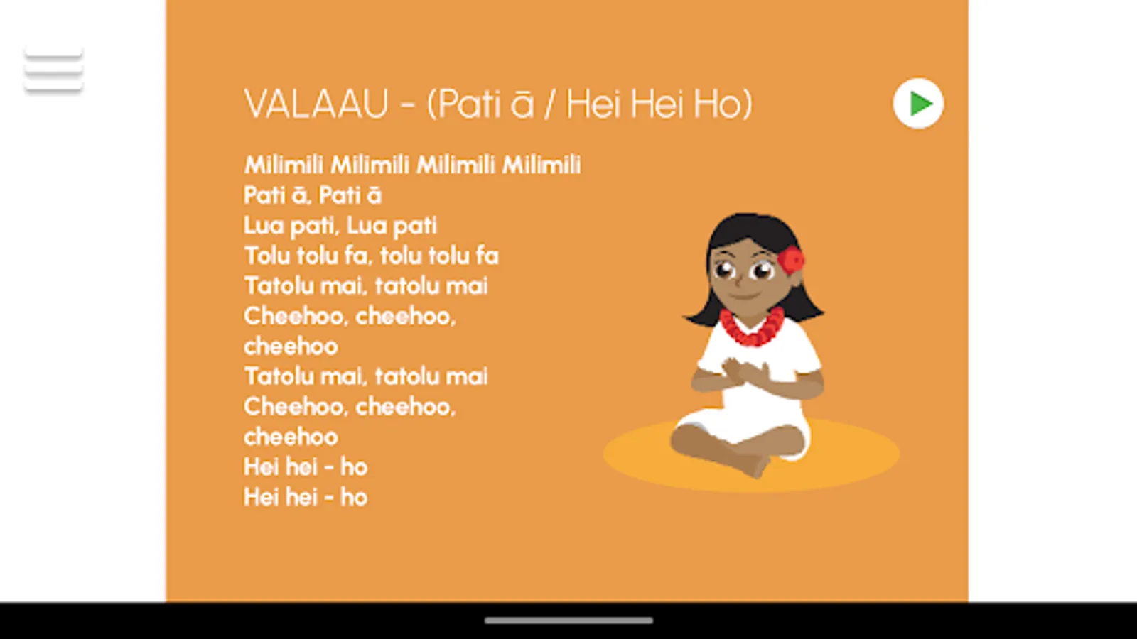 Listen to the captivating vocal skills of our children sing traditional and original songs as you open the app. Explore the magical culture of Samoa with imagery that reflects each song. Sing along karaoke-style in Samoan as each word highlights.