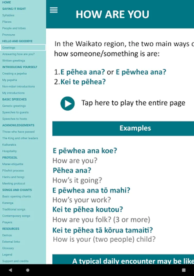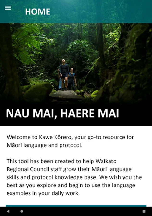 This tool has been created to support Waikato Regional Council staff to grow their Māori language skills and protocol knowledge base. We wish you the best as you to explore it and begin to use the language examples in your daily work.