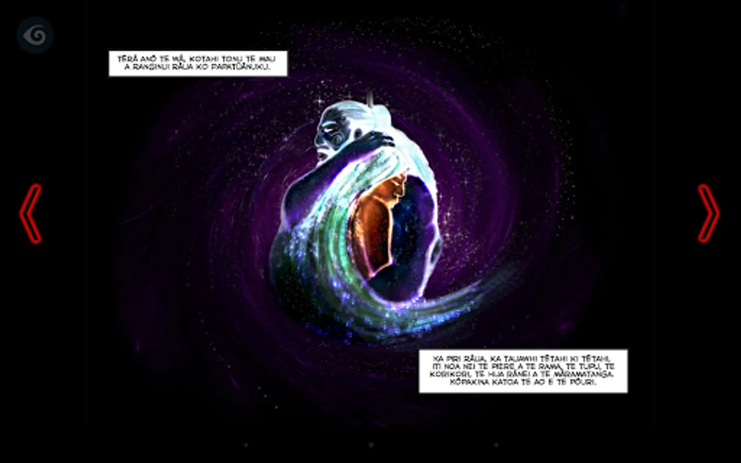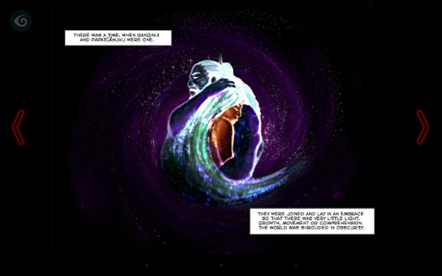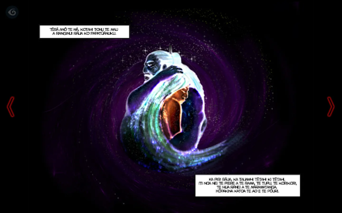 Te Orokotīmatanga o te Ao is the story of the creation of the universe according to Māori. It begins with Io, the Supreme Being and the infinite state of nothingness before you are transported through aeons to the time of Ranginui (Sky Father) and Papatūānuku (Earth Mother). You are then introduced to some of their children who are the source and inspiration for the stories that follow.