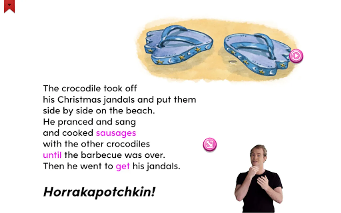 This digital book contains text and audio in English and a video readthrough and vocabulary in NZSL