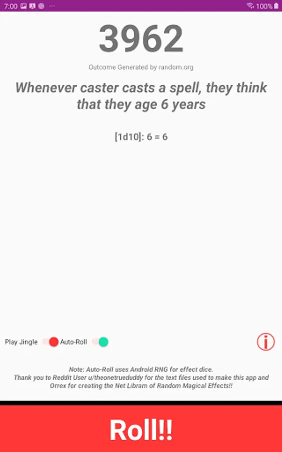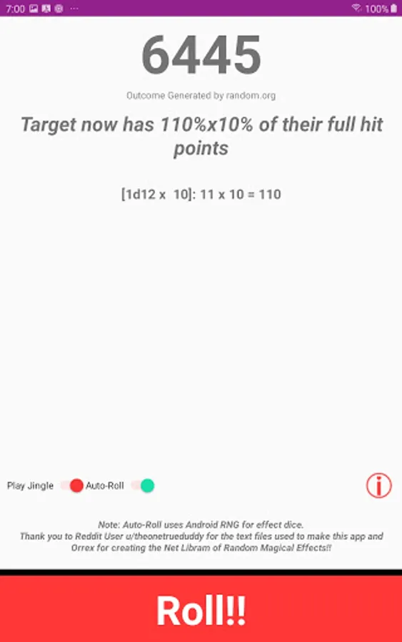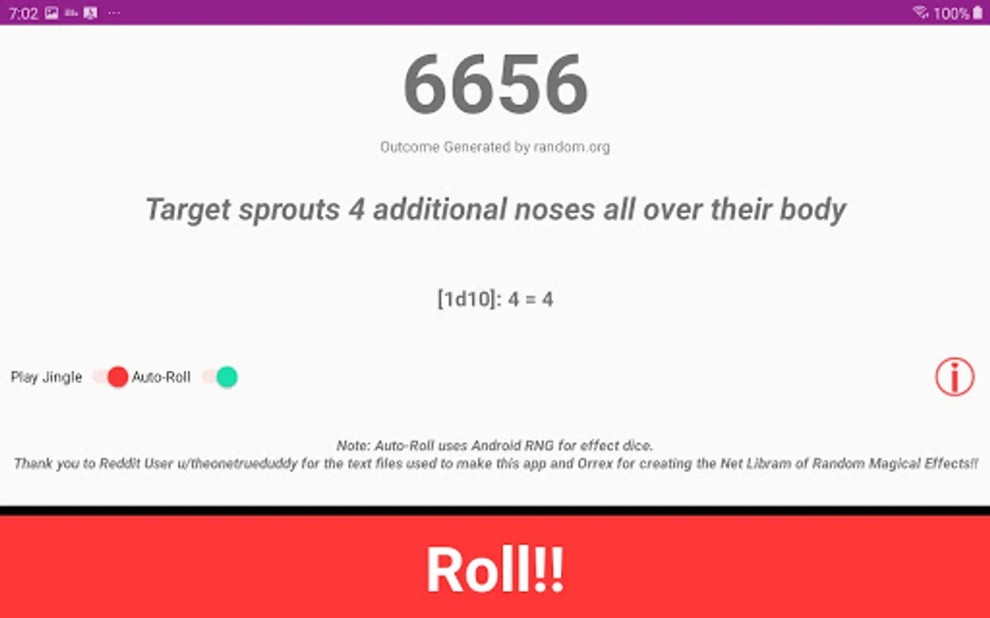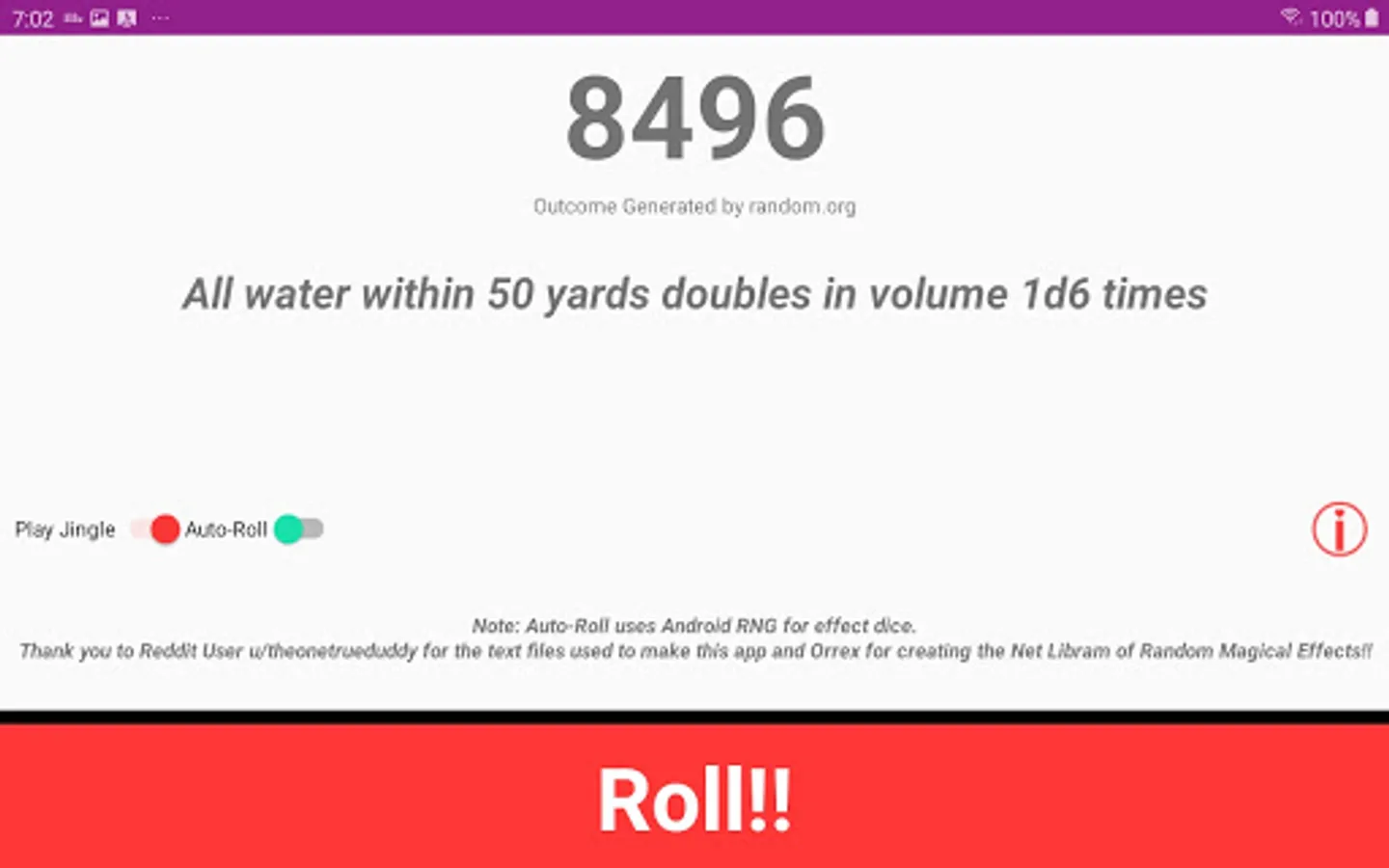 -Uses rolls from Random.org to get the outcome for the most random randomness