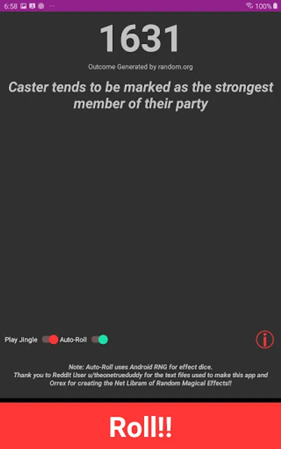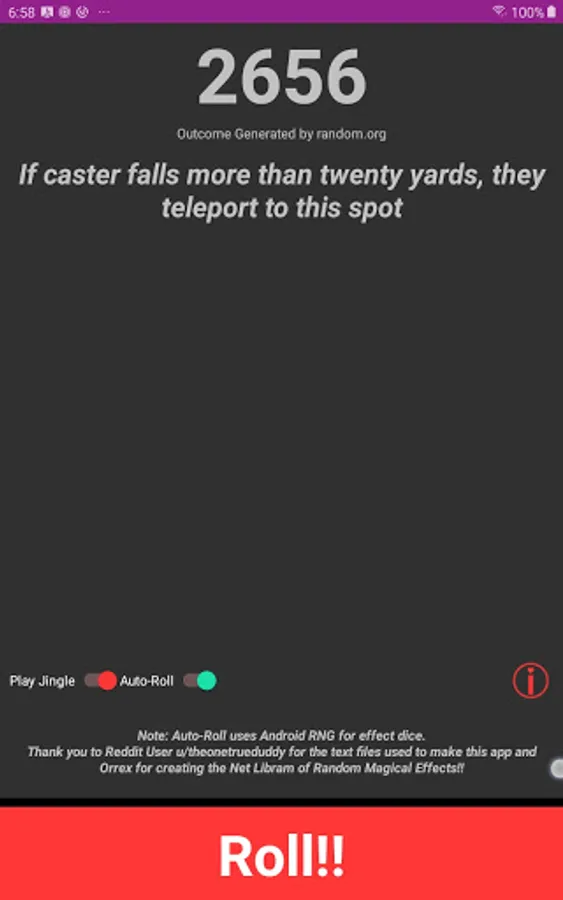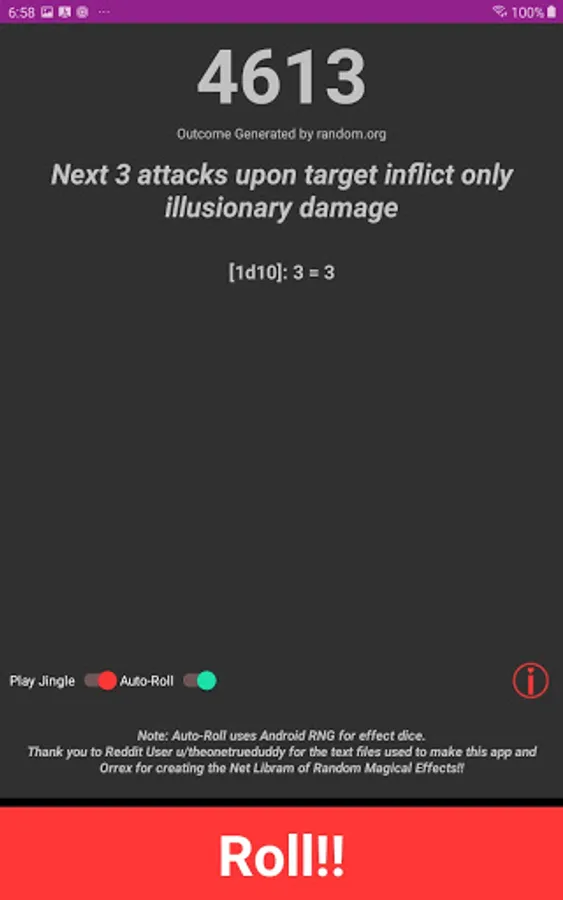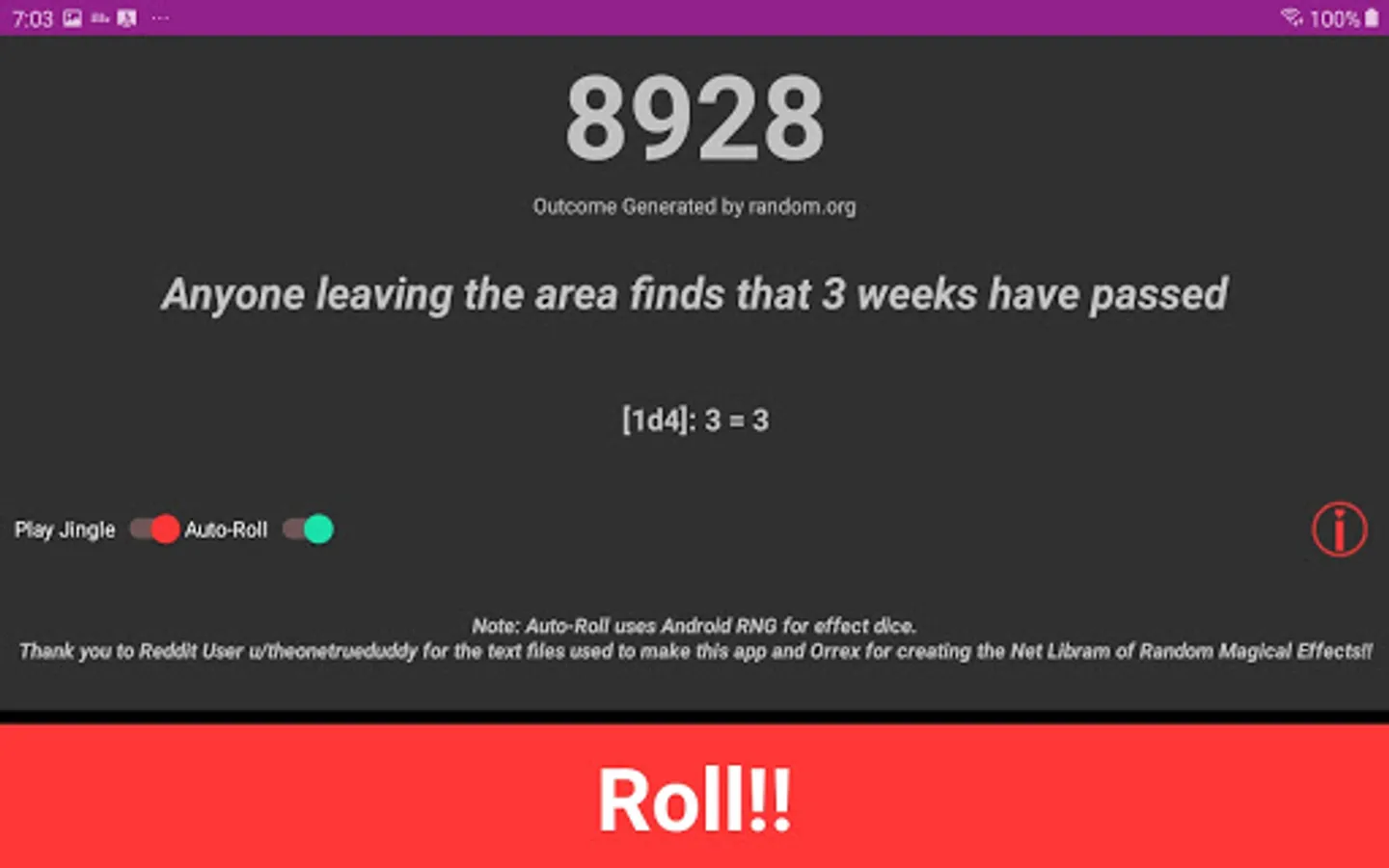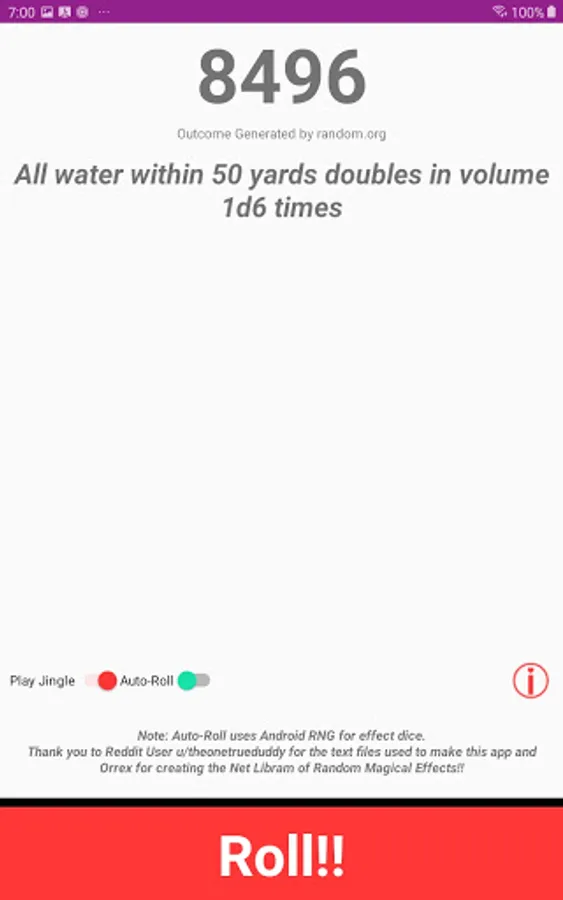 -Uses rolls from Random.org to get the outcome for the most random randomness