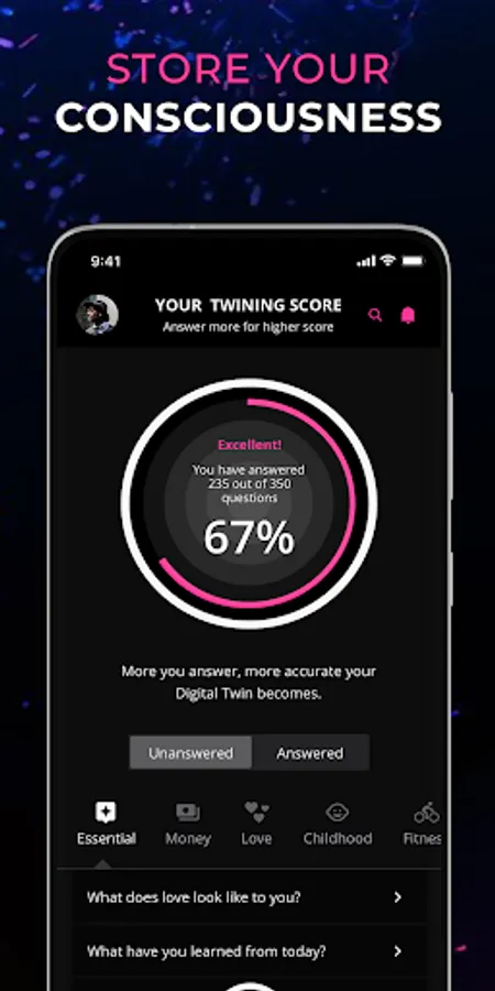 The higher your Twinning Score, the closer you get to know yourself fully.