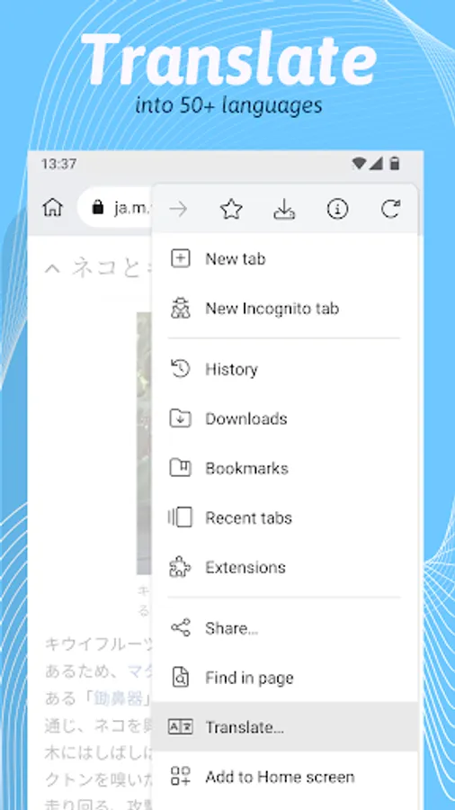 Kiwi Browser is made to browse the internet, read news, watch videos and listen to music, without annoyances.