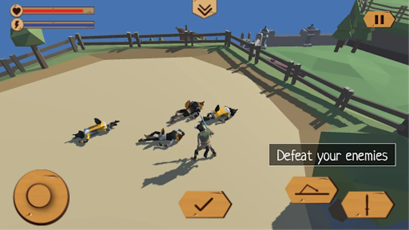 In this tactical fighting & sword fighter game you start with the husky dog. Then try the dogs with different damage, strength, intelligence, speed like the Papillon, Yorkshire Terrier, German Shepard, Labrador and more! As you grow and earn points you can get more powerful beasts and thrilling dog characters.