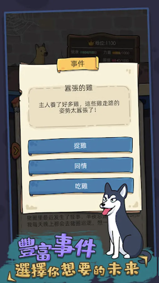 【Simulation Dog】You can experience everything a dog can do. You need to improve your ability to get better quality of the opposite sex; you need to have more cubs with various dogs in order to produce genetically powerful offspring. You need to deal with various random events in dog society and human society. Your gender, attributes, and talents are random, and only your own actions and choices can change them. There are so many dog breeds in the game, you can experience any kind of dog.