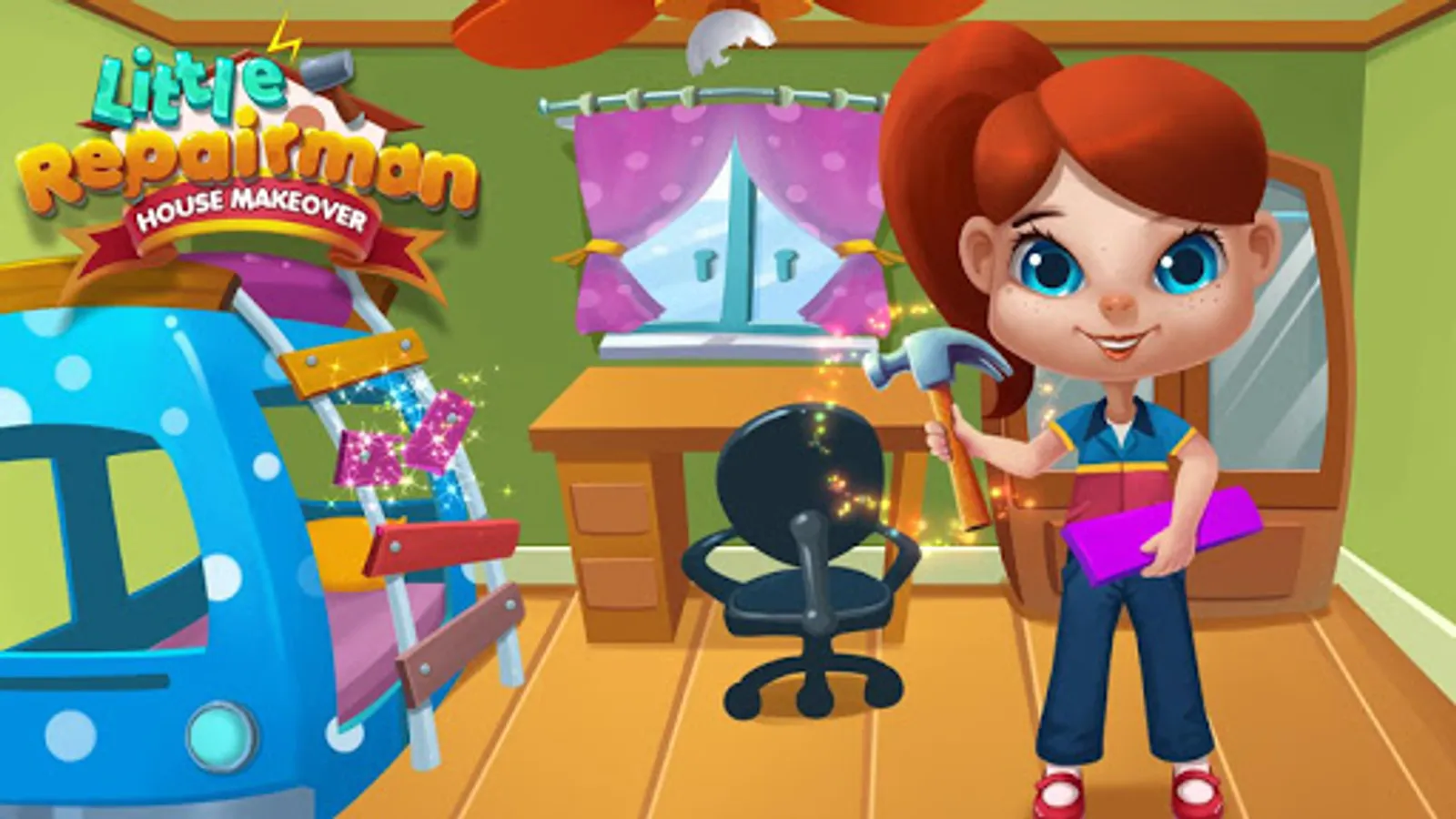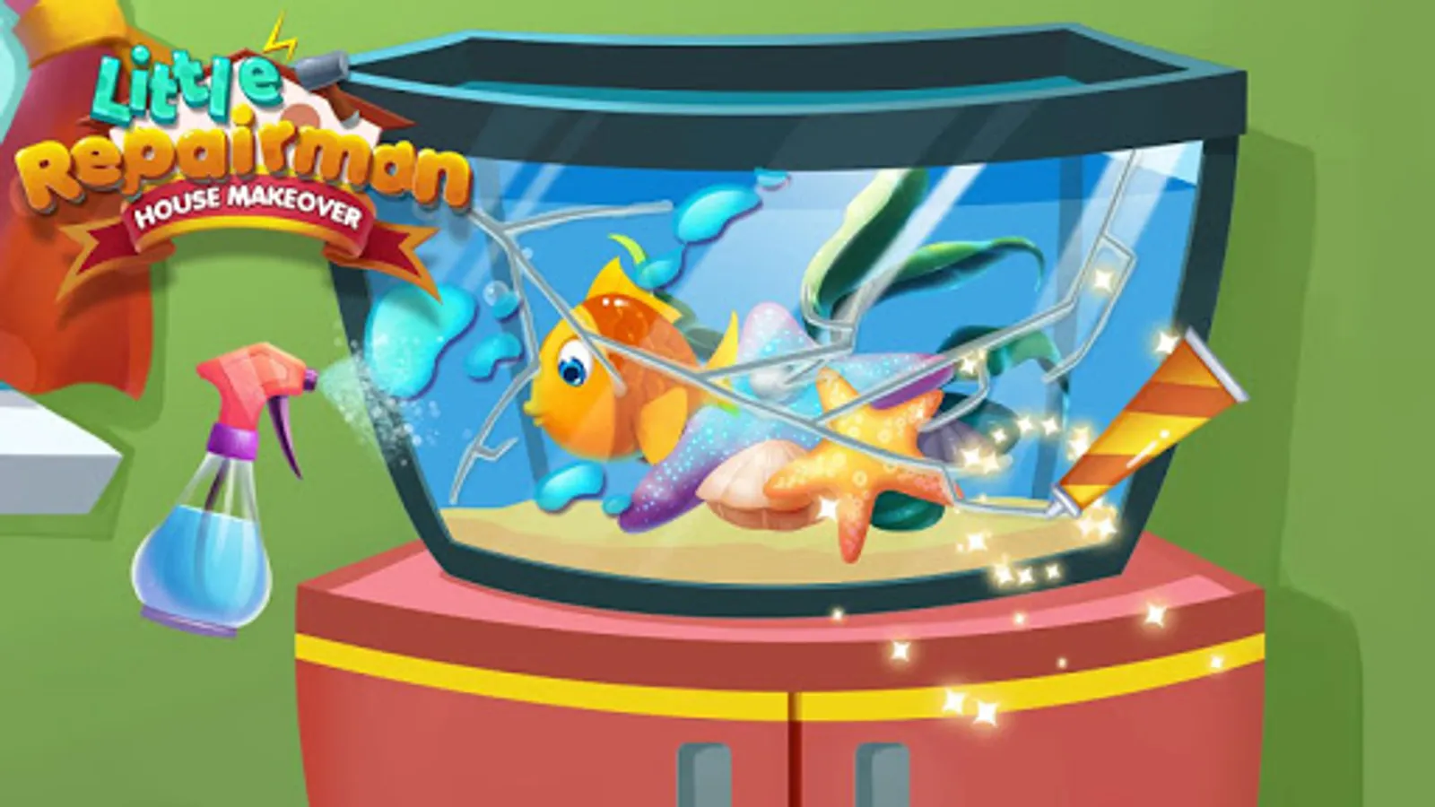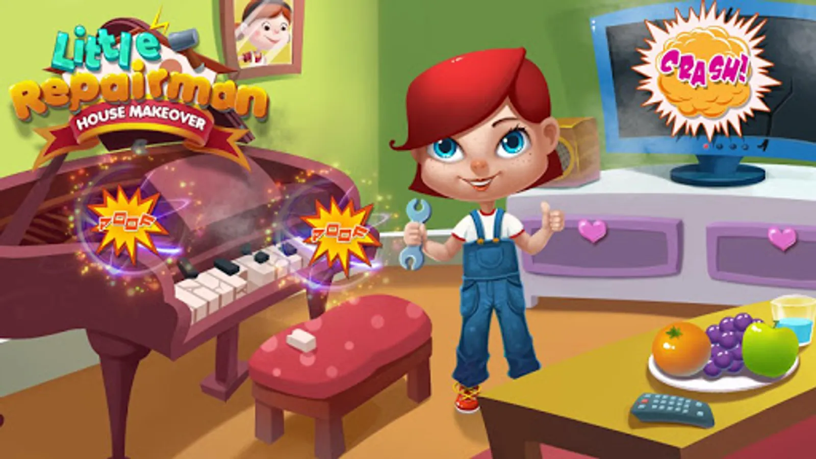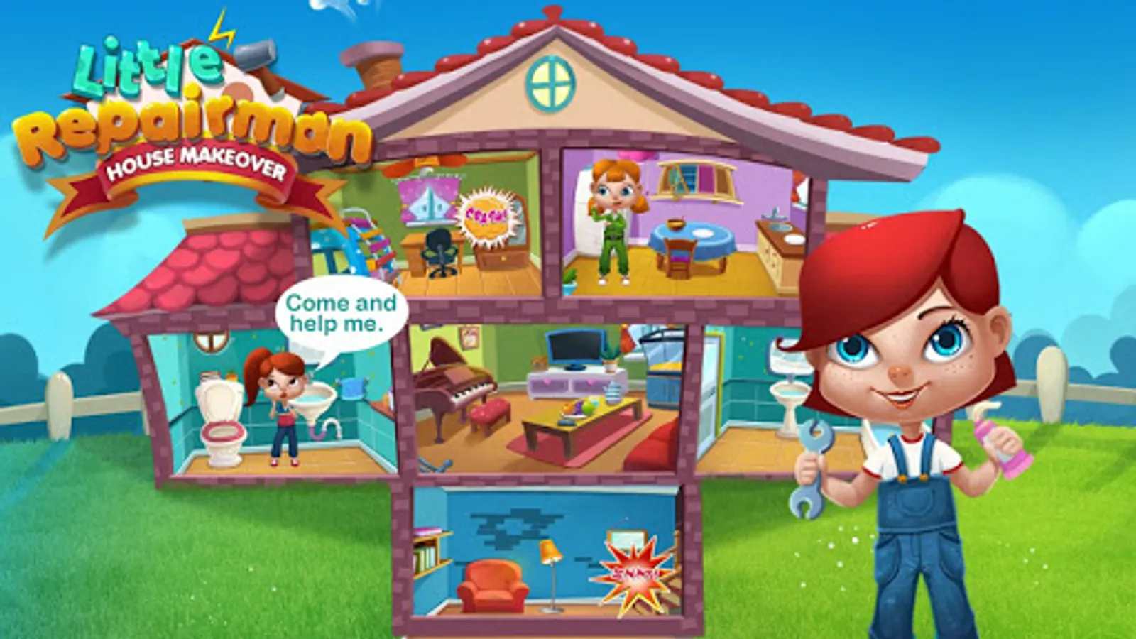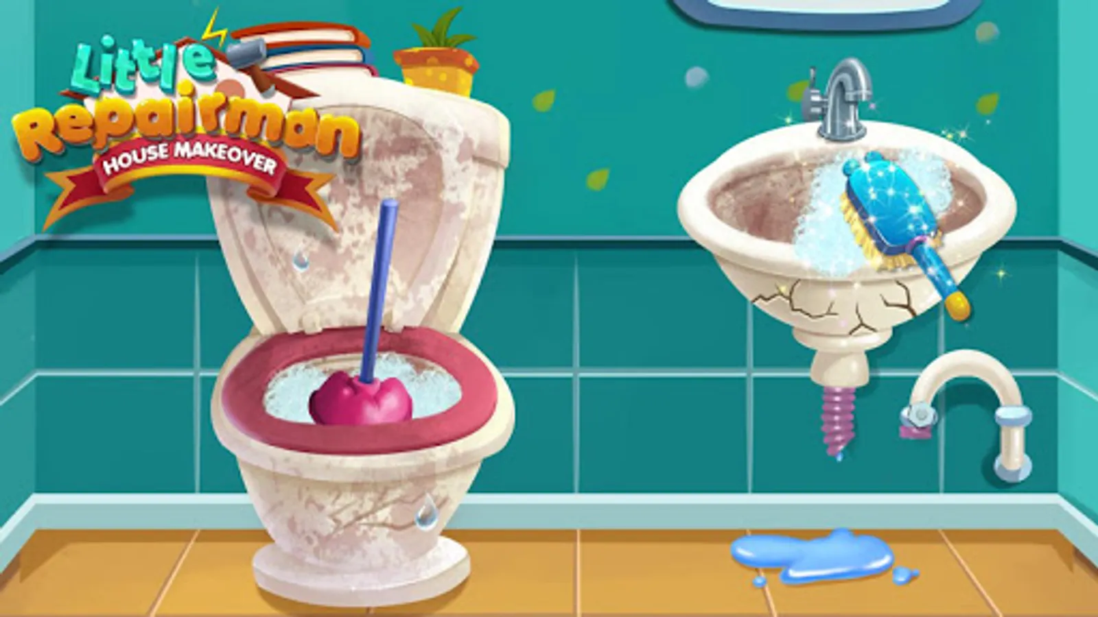 Your house needs you to repair!!! Daddy and mommy are not at home. But something goes wrong with the house. Would you like to be a little repairman to fix problems in the house? Clean bathroom, fix TV, and save kitchen! Let’s do a makeover to the house!