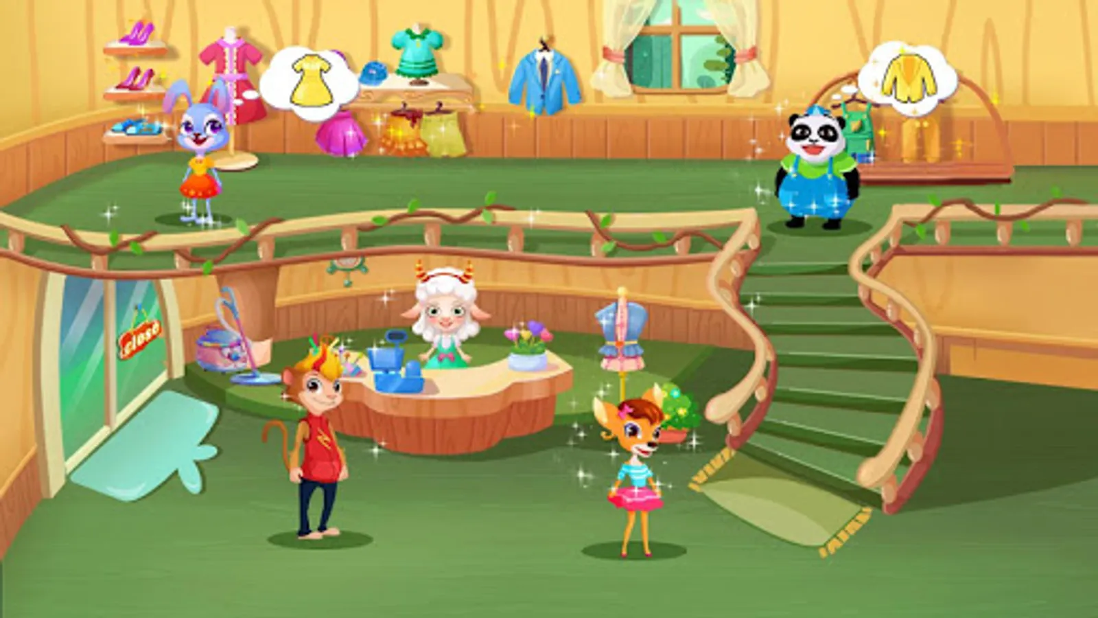 Clothes shop for jungle animals is open. Monkey, rabbit, deer and panda are waiting for making beautiful clothes. Talk to your clients, understand their requirements and then design special clothes for them. Draw your design on the cloth, cut the clothes and sew them by using sewing machine. Decorate your masterpiece with colorful accessories. Experience the fun of managing your own clothes shop.