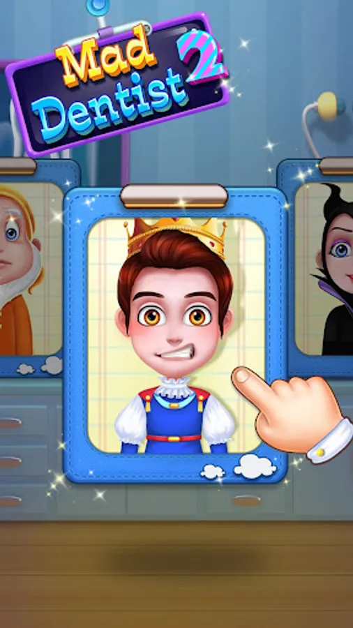 Dentist, special patients came to your clinic. They are two princesses, two princes, a witch and a draft. They all have problems on their teeth. Your missions are to give them right treatments and help them feel better. Time to show your expert skills and cure your patients.