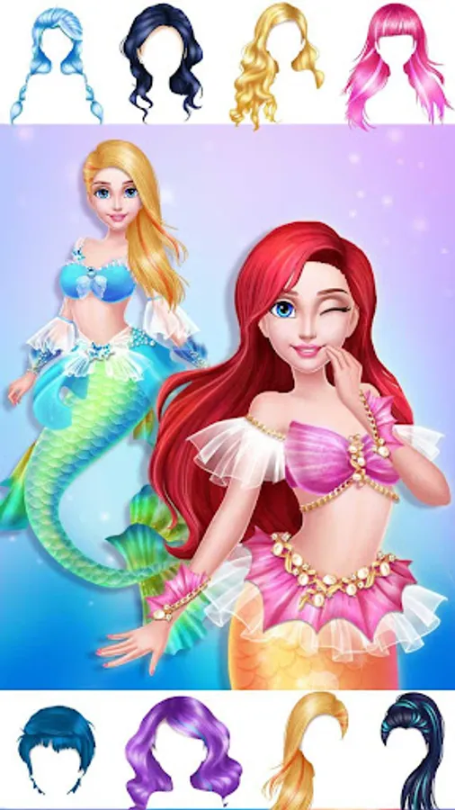 The little mermaid lives in the palace of the deep ocean. ๐งโโ๏ธShe fell in love with a human prince when the first time she saw him. Today is the princeโs birthday. ๐คดHe invites the mermaid princess to attend the party. Can you help the mermaid princess to get ready for the party and dress beautifully?๐ Enjoy a relaxing spa to lightening her skin. Apply her fashionable makeup and choose perfect outfit for her.