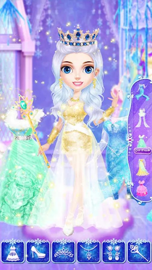 The first snow falls to the kingdom. The princess is going to hold a dance party in the palace. She wants to dress like a snow princess and decorate the palace in snow theme. But she’s so busy with government affairs. Can you help her select some beautiful clothes👗 for the party from her luxury dressing room? Take her to do a facial clean, put on delicate makeup and dress her as a snow princess. Of course, ornaments and glass slippers are necessary. 👠Then our princess can dance with her handsome prince.