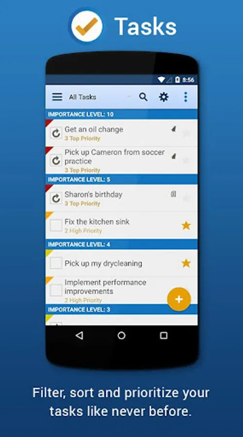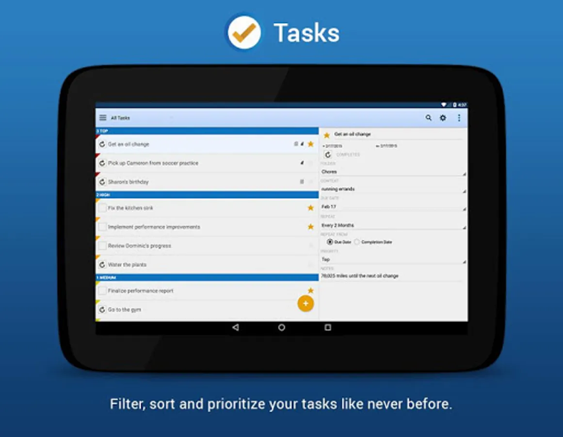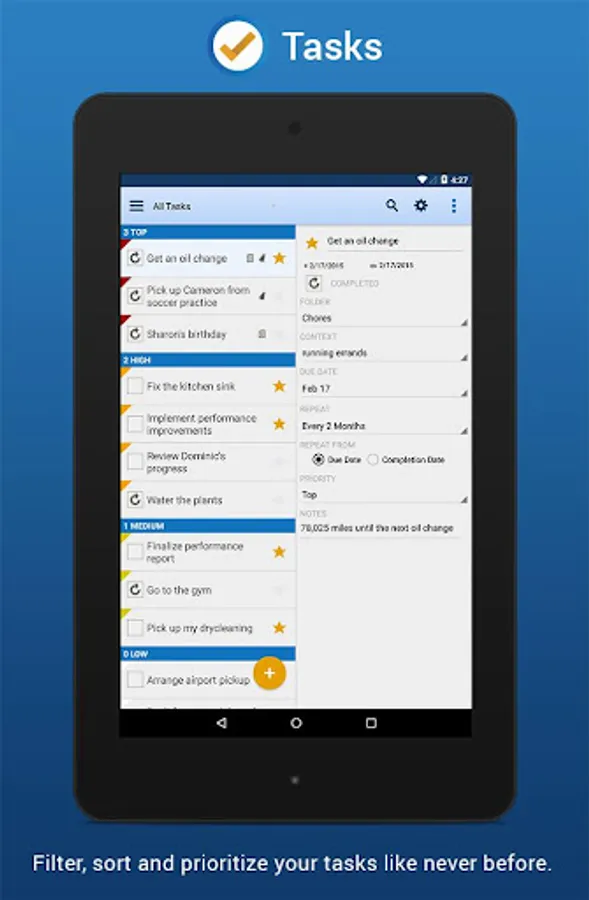 * Search, filter, sort and drill down into your tasks in a variety of ways to see the subset of tasks that are useful right now and ensure that important tasks float to the top.