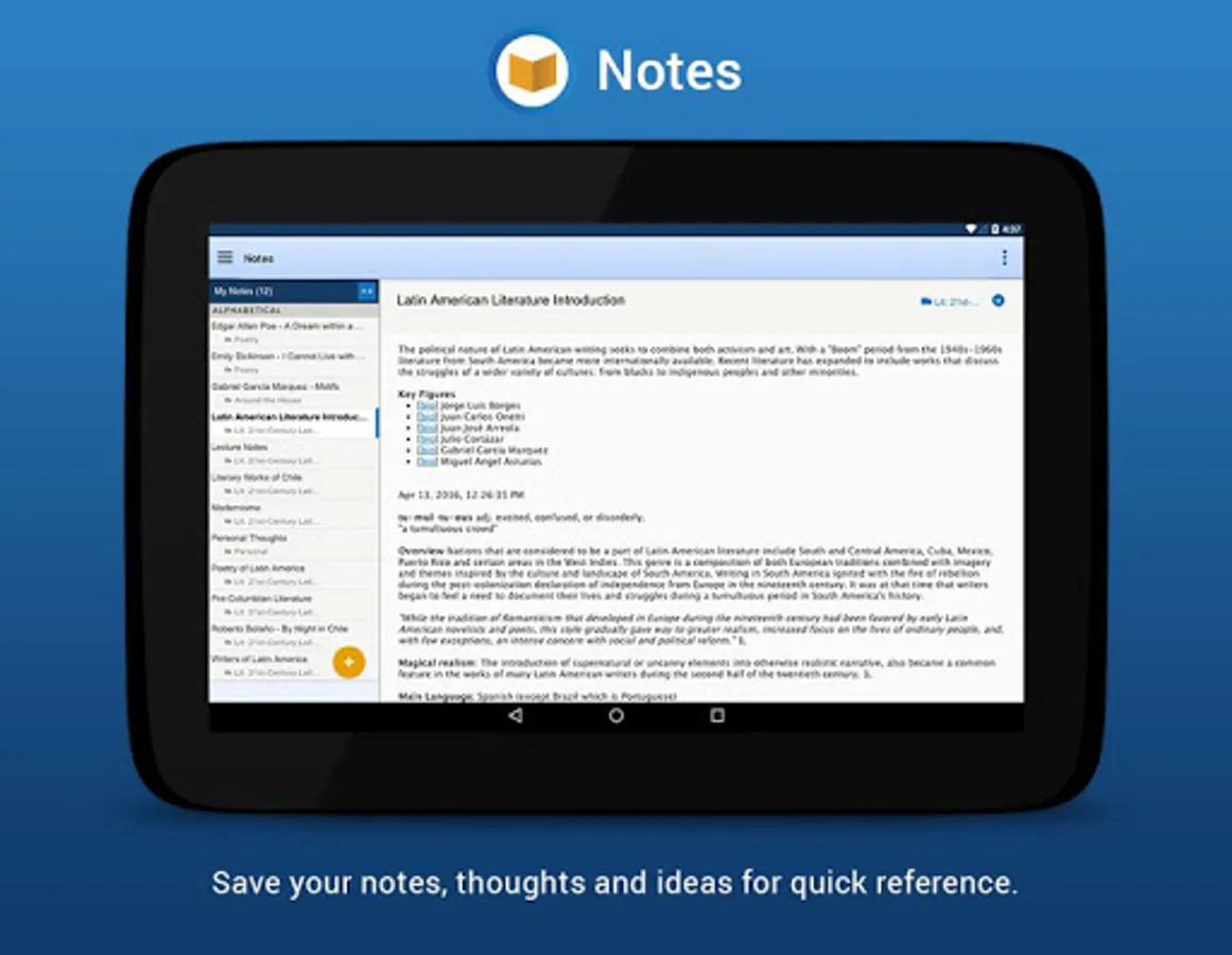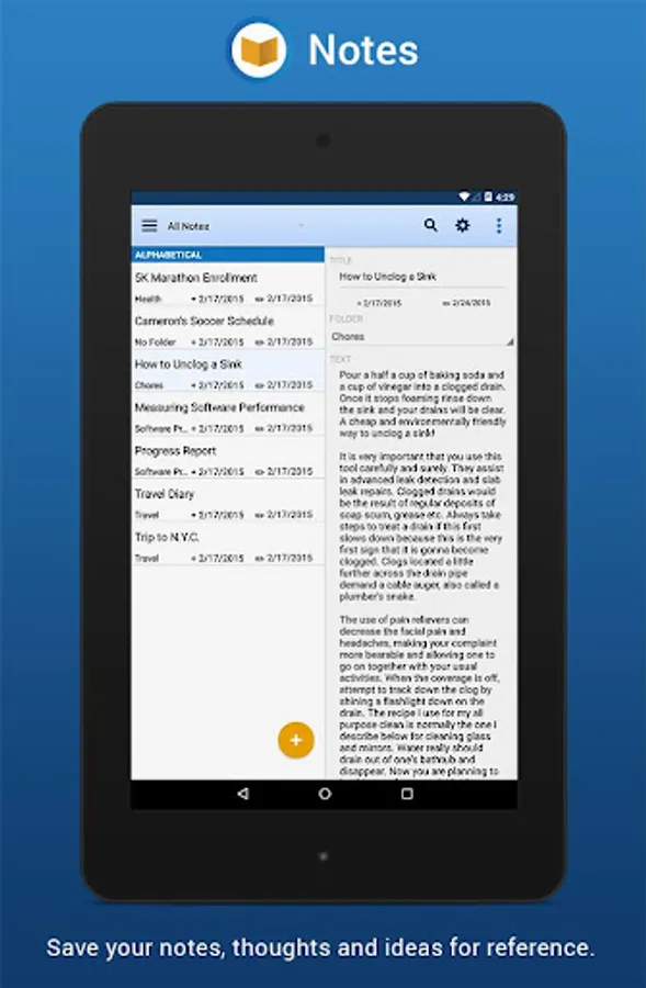 * Organize and permanently store your longer free-form notes in the Notebook section.