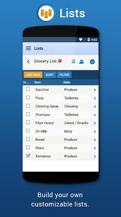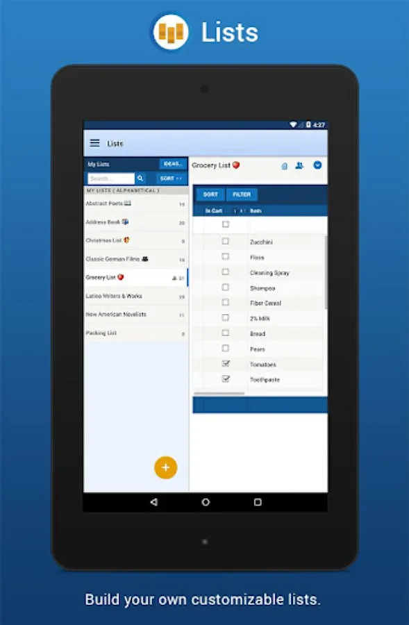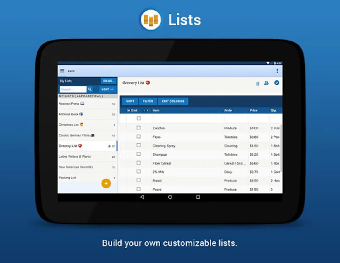 * Create customizable Lists for any purpose with the Lists section (requires Android 4.2 or higher).