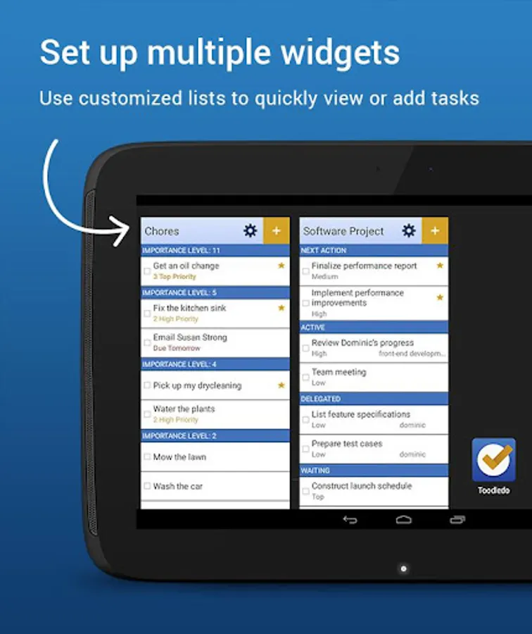 Toodledo is an incredibly powerful tool to increase your productivity and organize your life. More than just a to-do list, Toodledo provides you with a place to store your notes, outlines and habits. Access your data on any device or browser. We’ll keep everything up to date with automatic syncing.