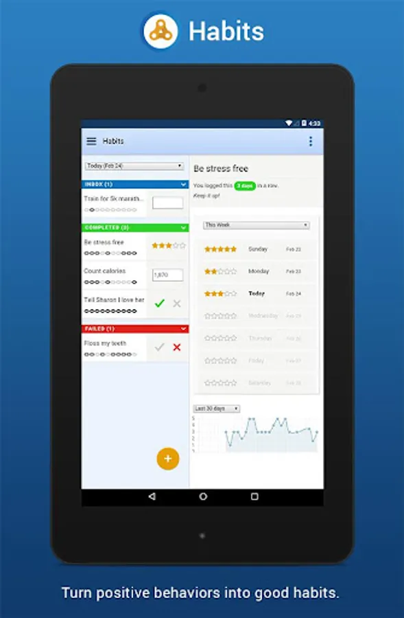 * Make good habits and break bad habits. Track your progress with our Habits section (requires Android 4.2 or higher).