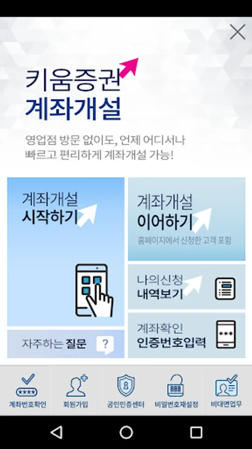 Start your meeting with Kiwoom Securities through the “Kiwoom Account Opening” app.