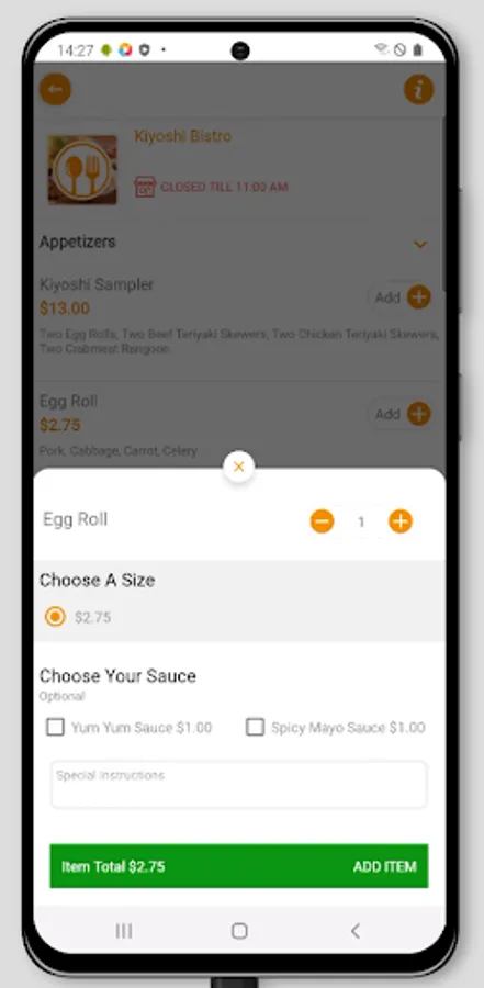 1. Get the Kiyoshi Bistro Online Order app and conveniently order from anywhere on your Android phone and tablet.