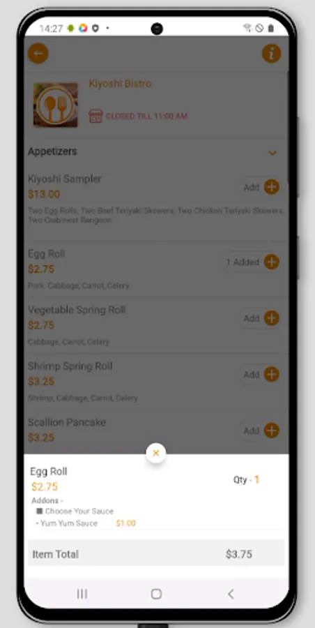 2.Kiyoshi Bistro is going digital now and has it's own online ordering app. If you want to order delicious food from us, just download our app and place order in 3 quick steps. Build your order just the way you like it or choose one of our combo from the menu. Add items from the rest of our robust menu. And with the order Tracker ® you can follow your order from the moment you place it until it’s out for delivery, carryout or pickup.