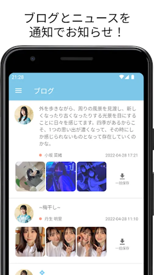 Blog notifications can be set for each Hinatazaka46 member! You can easily browse the blogs of each Hinatazaka46 member.