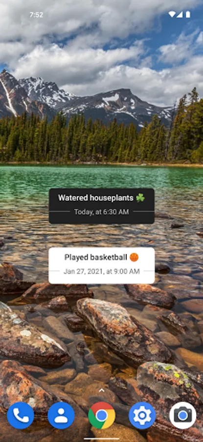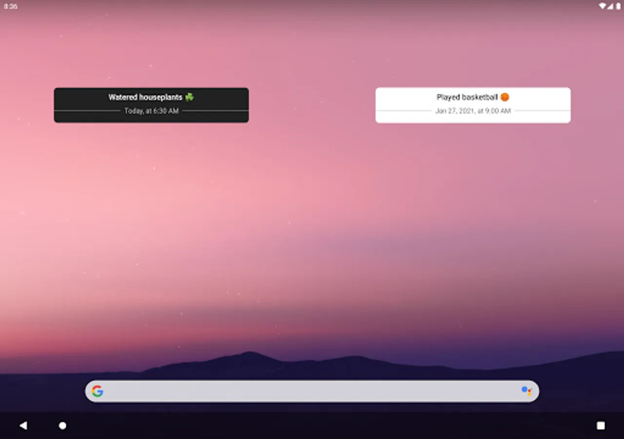 Beautiful widgets are available in both light and dark themes to put your events on your home screen so they're always in front of you. Easily add entries from the widget.