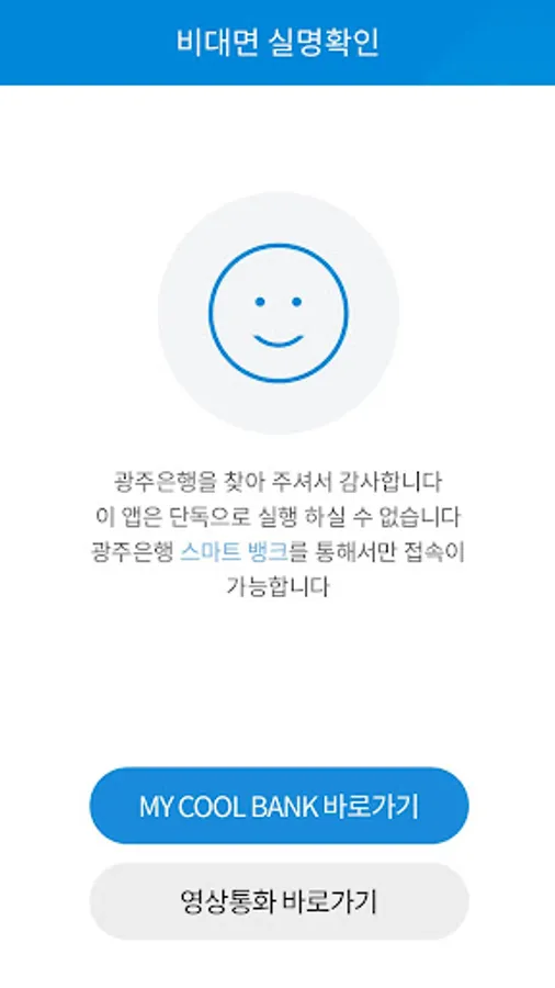② This app is a dedicated app for non-face-to-face real-name verification. It does not run alone and can only be used normally through “My Cool Bank”, a smart banking app of Gwangju Bank.