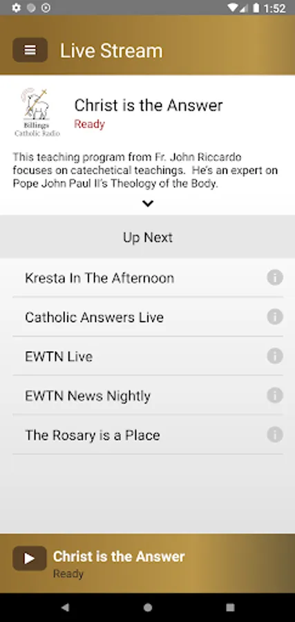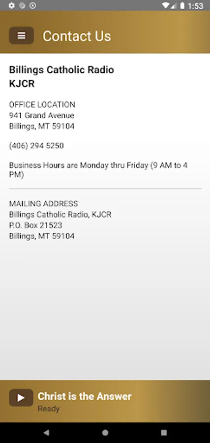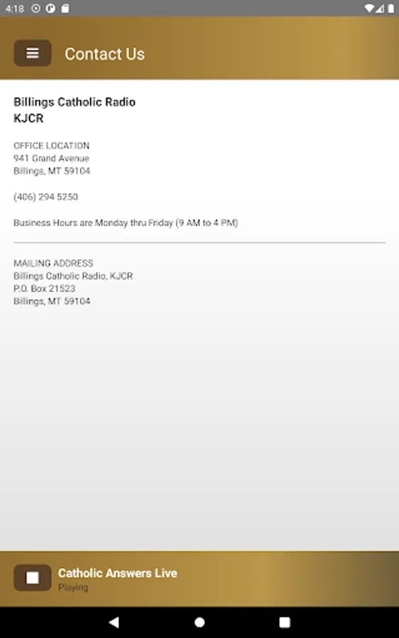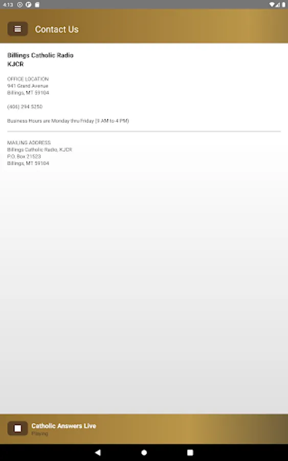 Billings Catholic Radio, KJCR is owned and operated by the board of directors or Agnus Dei Communications. Founded in 2007, Agnus Dei Communications was formed as a 501c3 non-profit whose mission is to use the power of radio to evangelize, educate, and inspire a faithful life in Christ. Our vision is to share the truth of Jesus Christ through the teachings of the Catholic faith. We broadcast the EWTN Global Catholic Radio Network as well as the Ave Maria Radio Network and promote many local Catholic events, including live broadcasts of the Billings Central High School Rams Athletics. We provide authentic Catholic teaching for all who seek Christ.