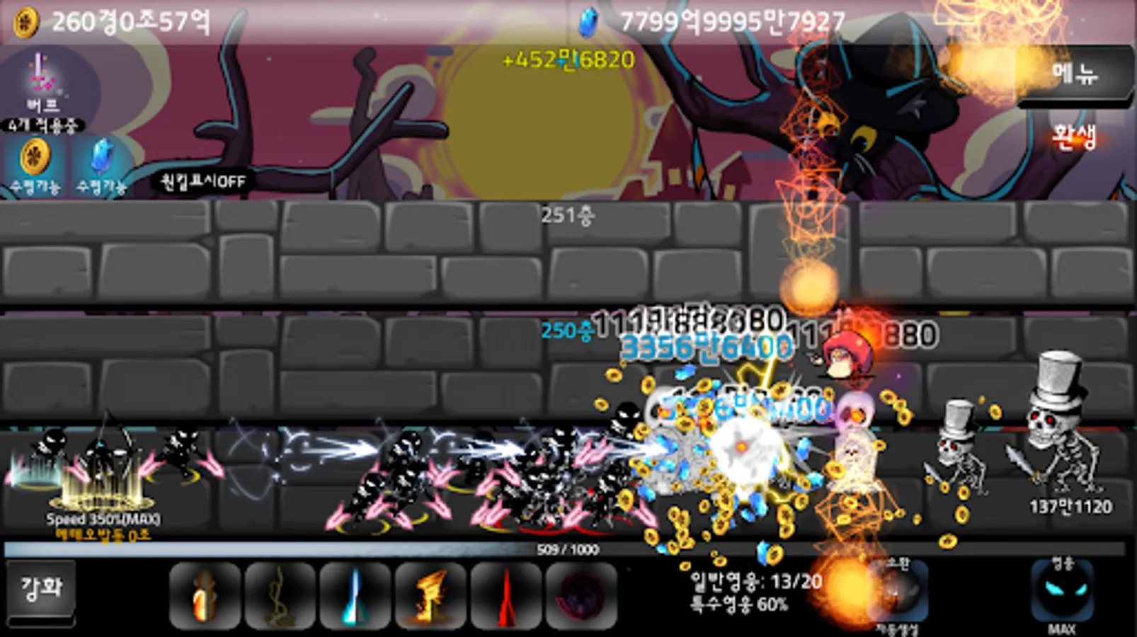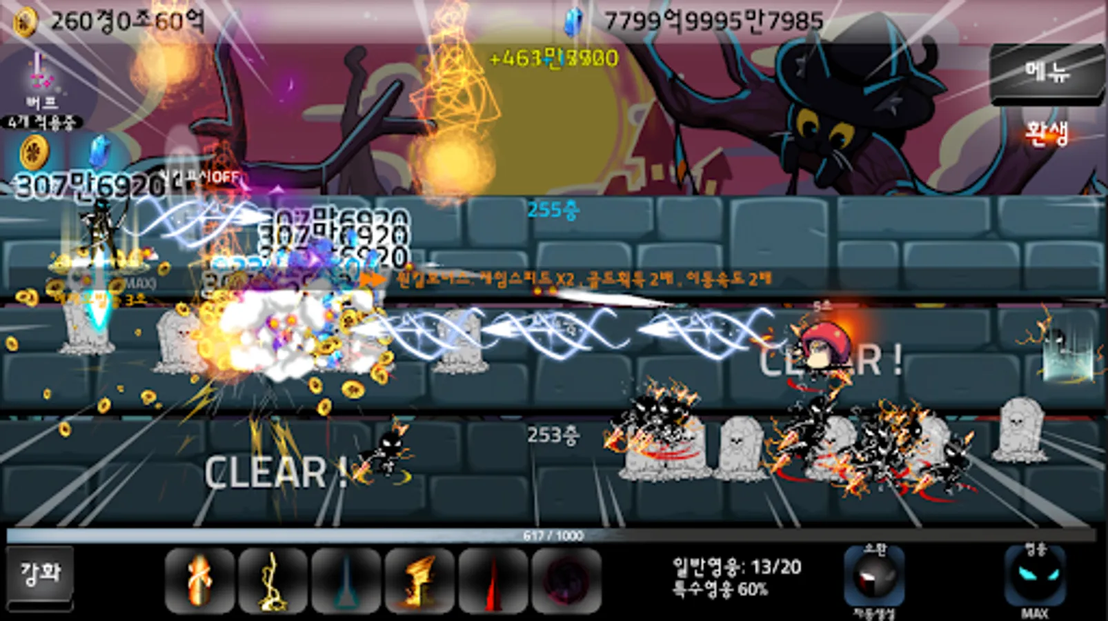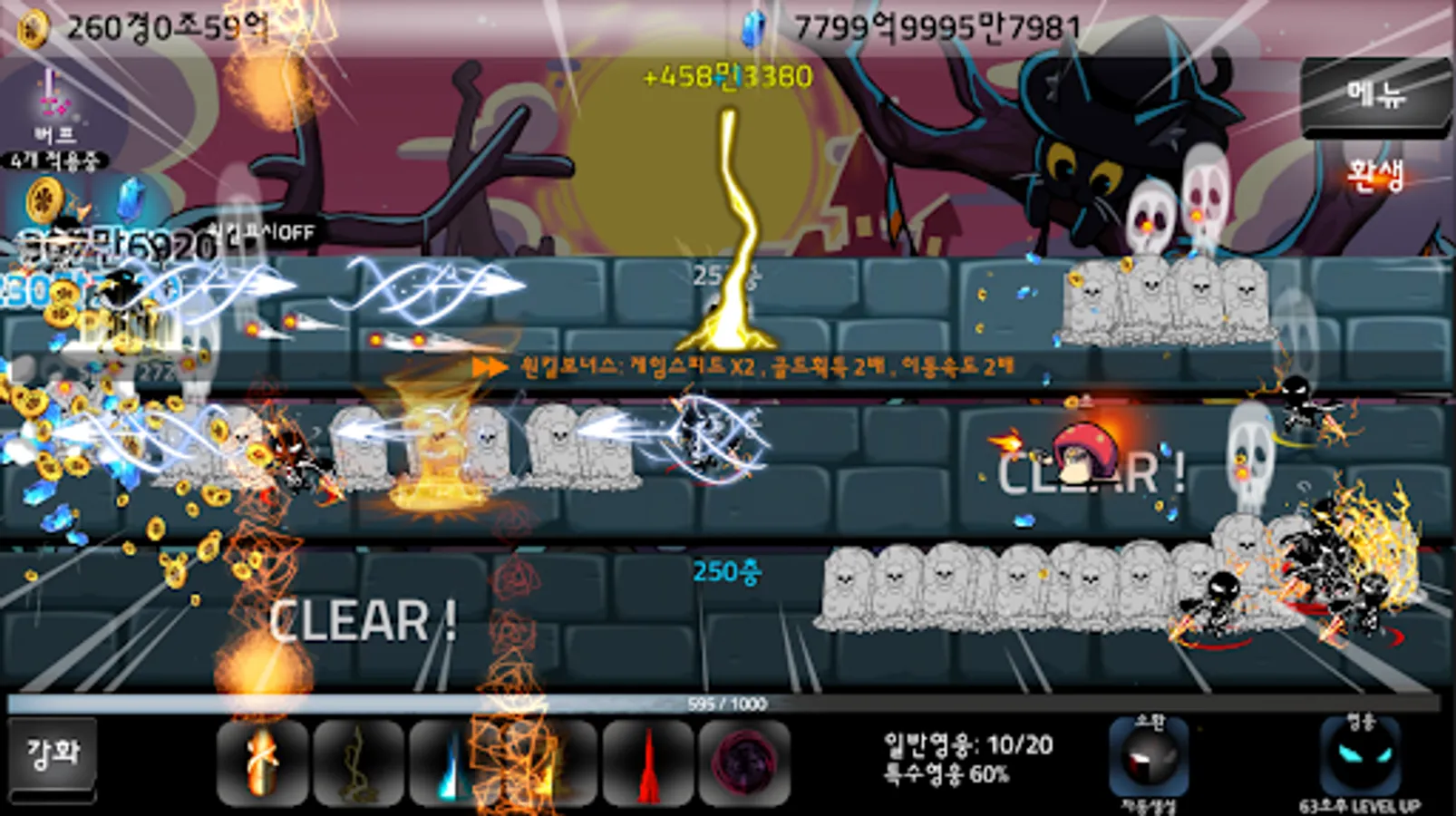 올라갈 때마다 강해지는 몬스터에 맞서 영웅들을 강하게 만들어서 더 높은 층으로 올라가세요