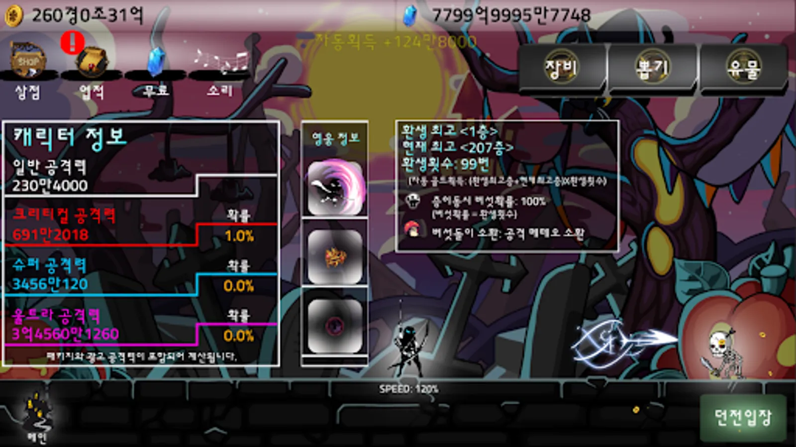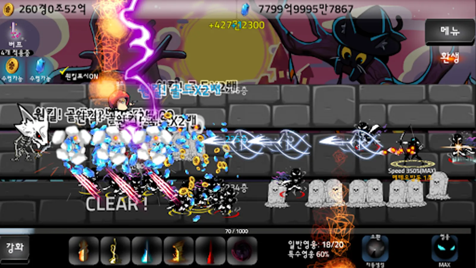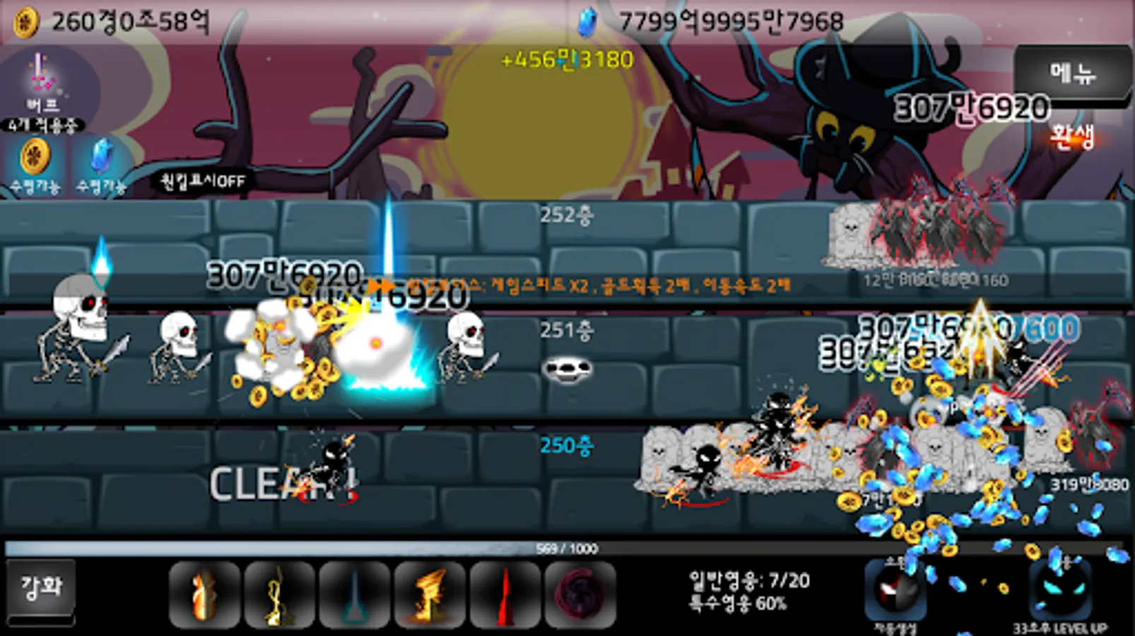 올라갈 때마다 강해지는 몬스터에 맞서 영웅들을 강하게 만들어서 더 높은 층으로 올라가세요
