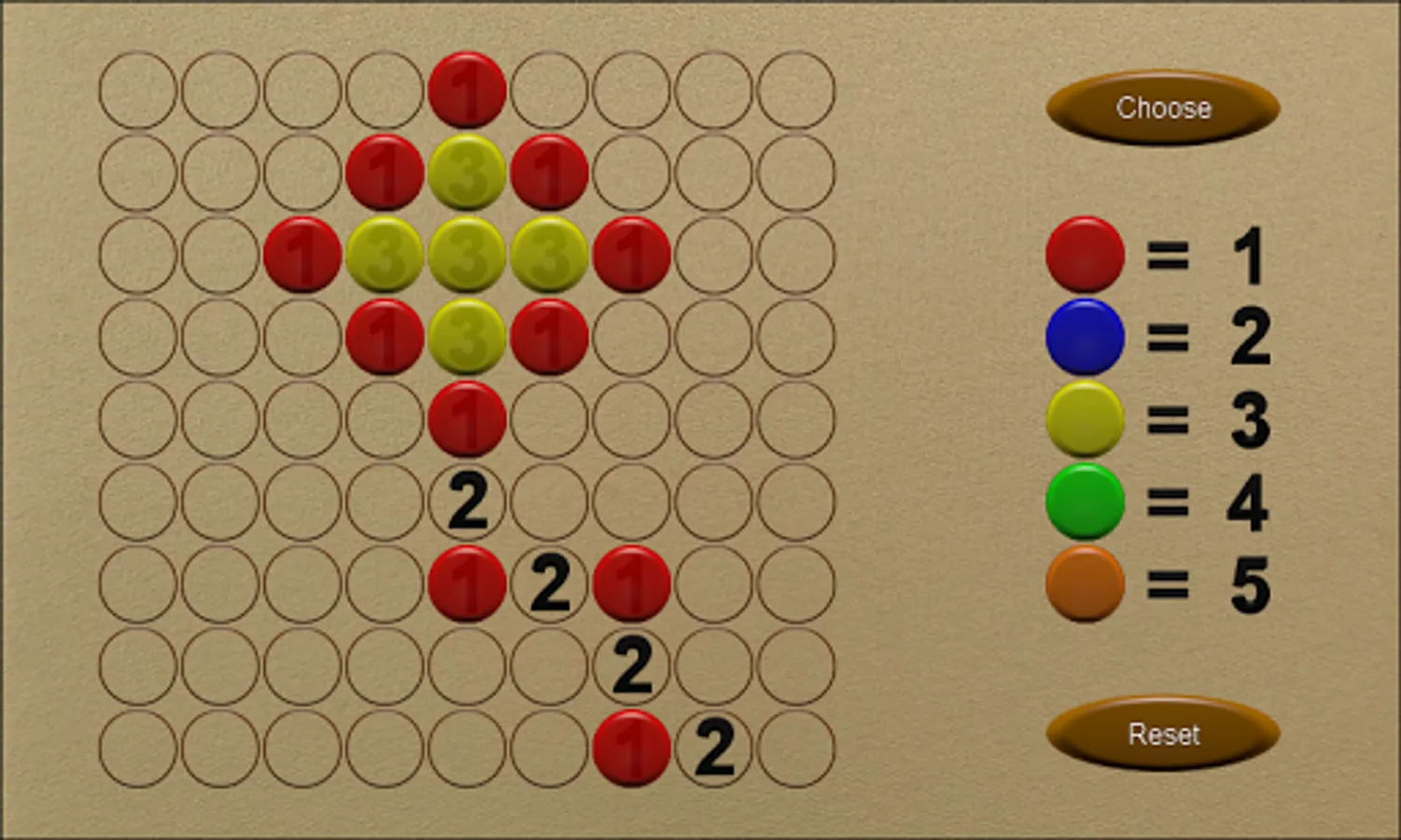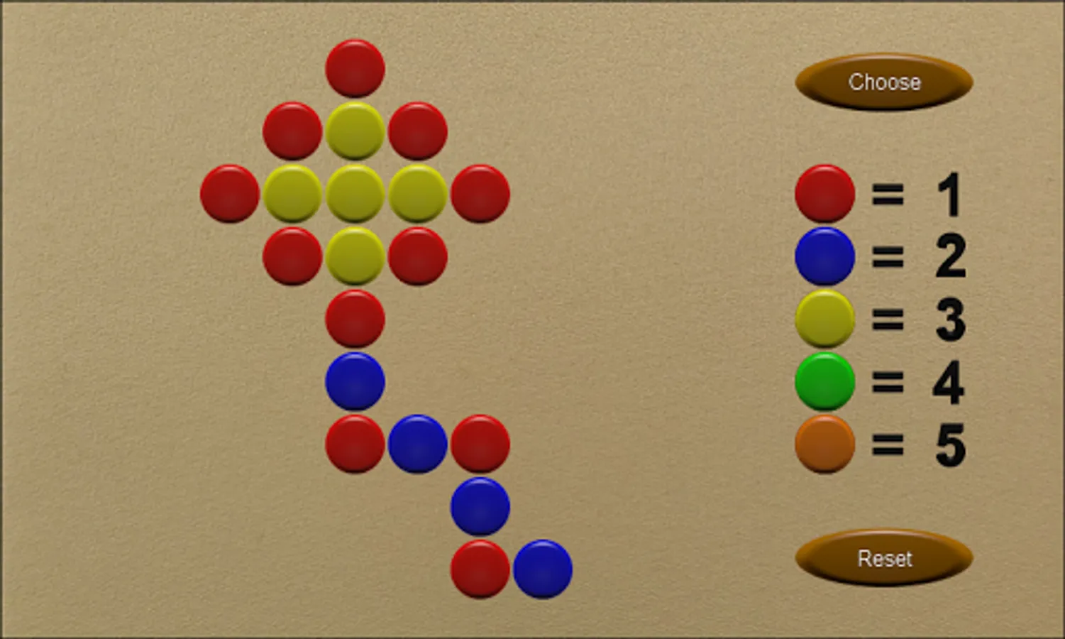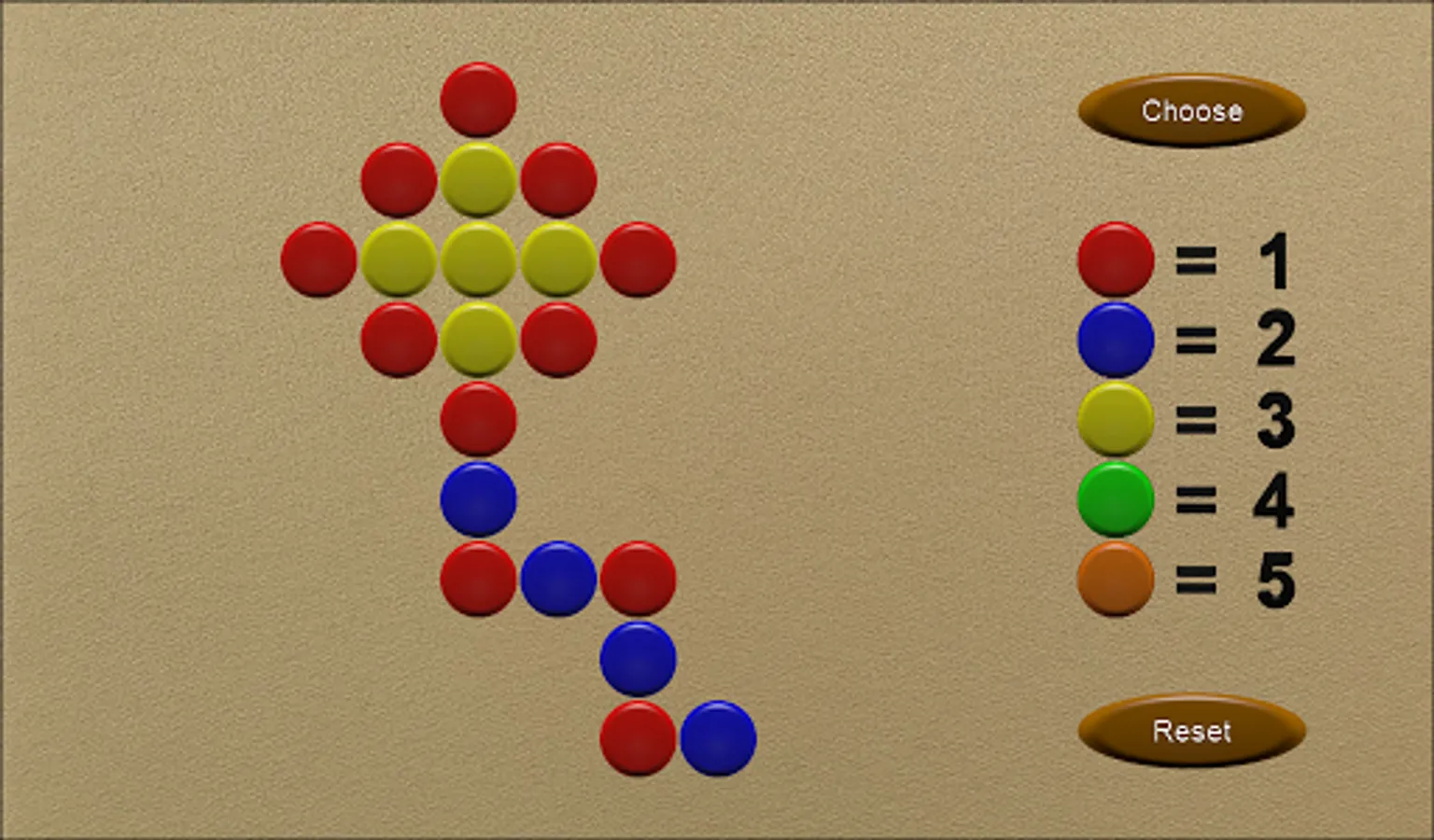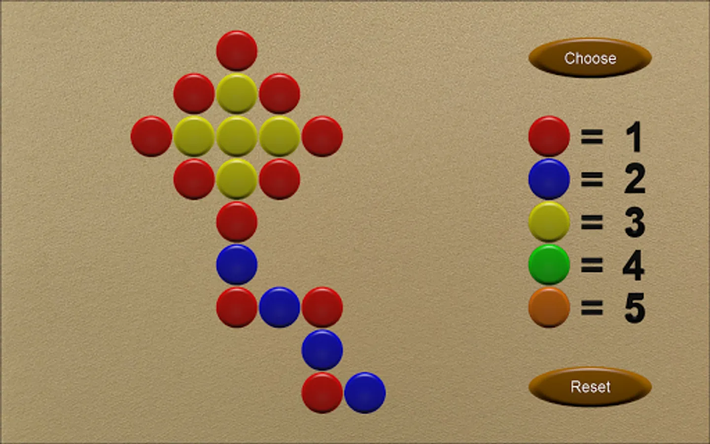 Coloring book that uses colored disks to fill in the colors of a picture.