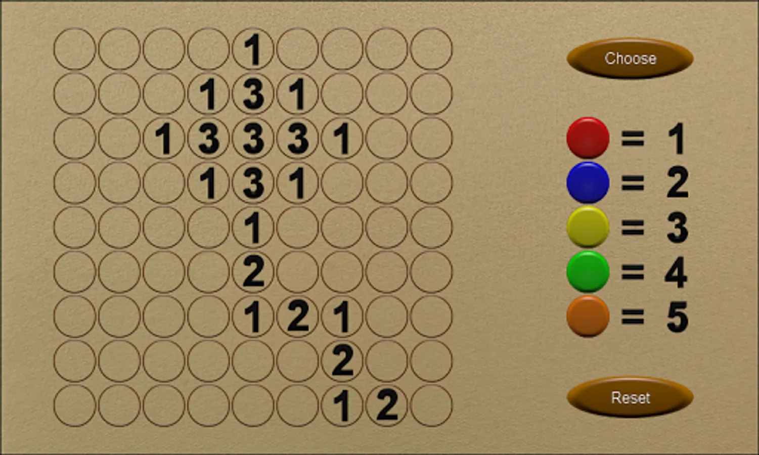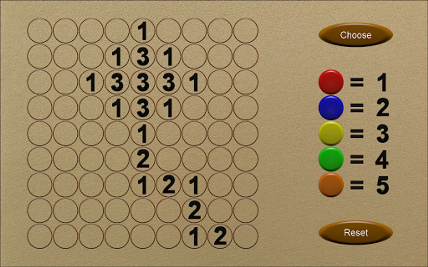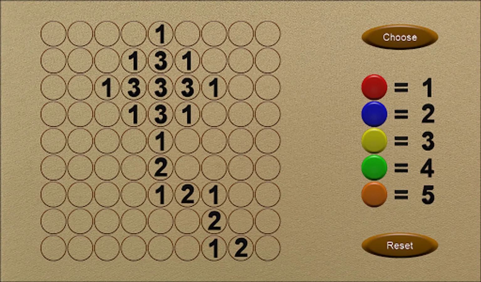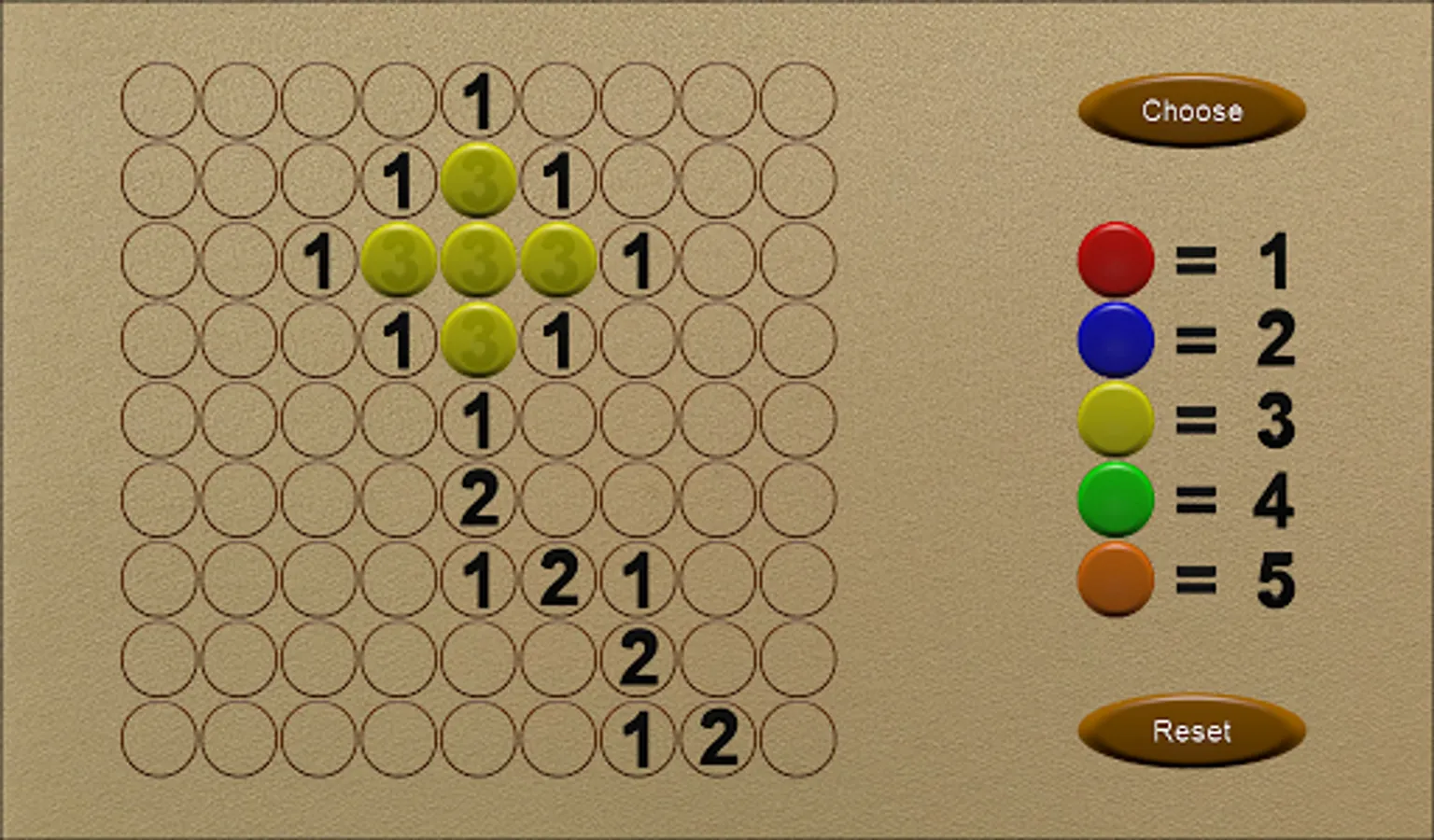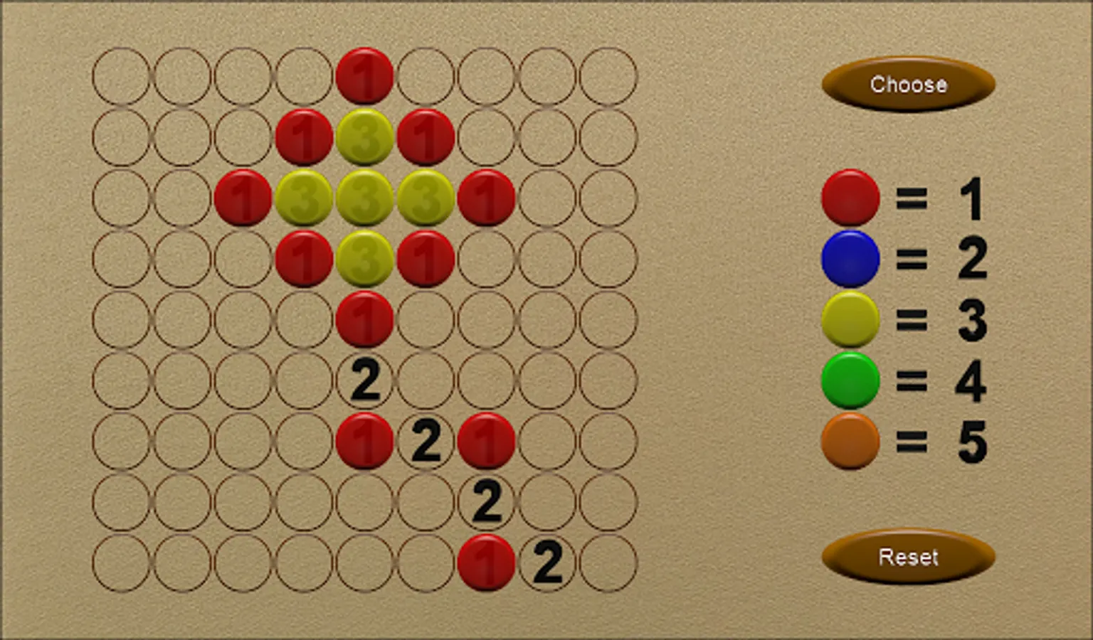 Coloring book that uses colored disks to fill in the colors of a picture.
