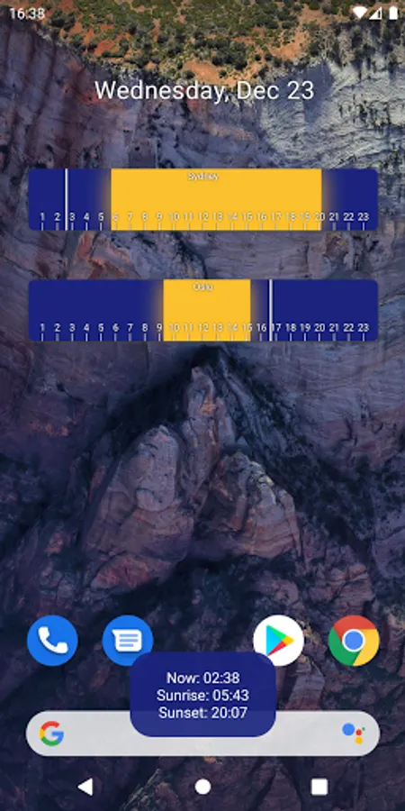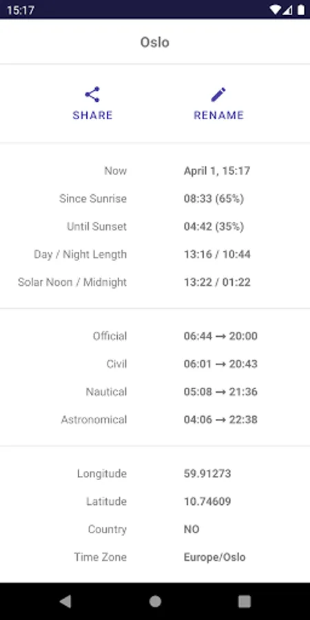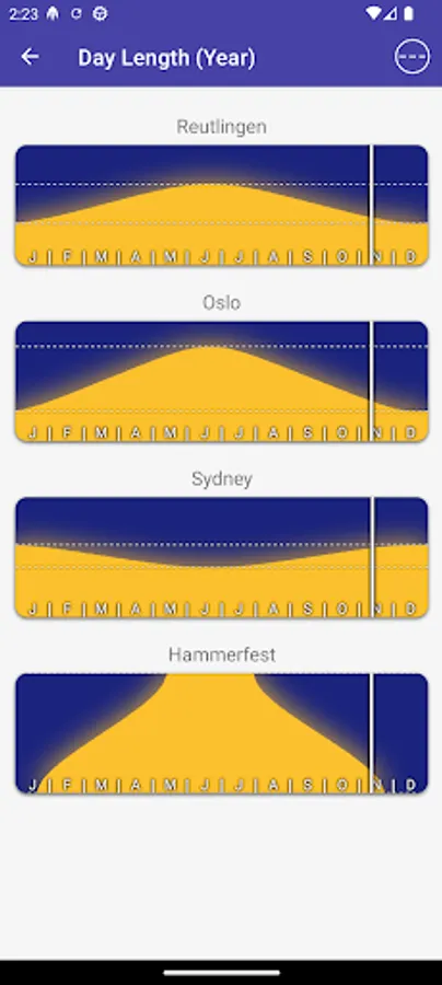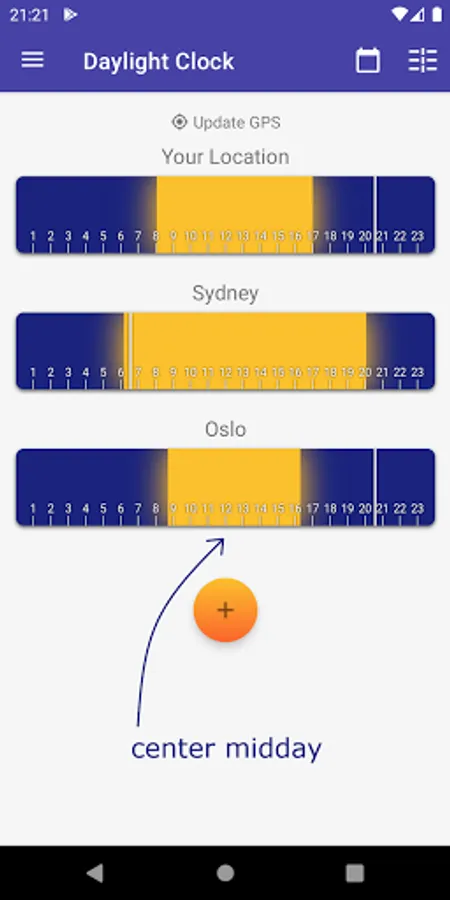 With this clock app you can not only calculate the times of sunrise and sunset, but also compare the twilight with a unique graphic.