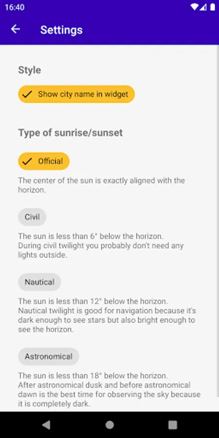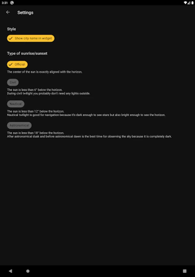 Do you know the difference between Official Sunrise/Sunset, Civil Sunrise/Sunset, Nautical Sunrise/Sunset and Astronomical Sunrise/Sunset?