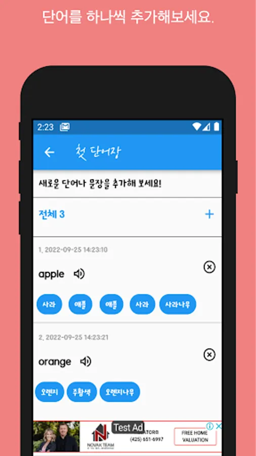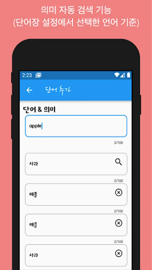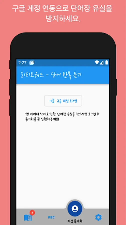 It provides functions for repeating listening to words or sentences (you can listen to their meanings through wordbook settings), searching for meanings of words, and saving data through Google account.