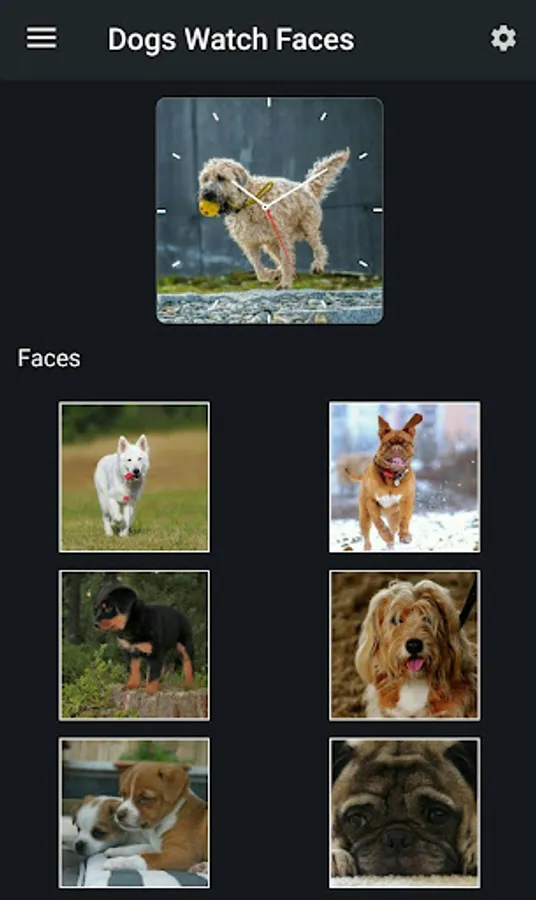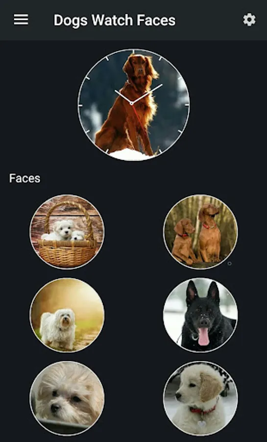 A unique and intelligent Smart Watch application that features a beautiful collection of Dogs watch faces with best in class user interface for customization.