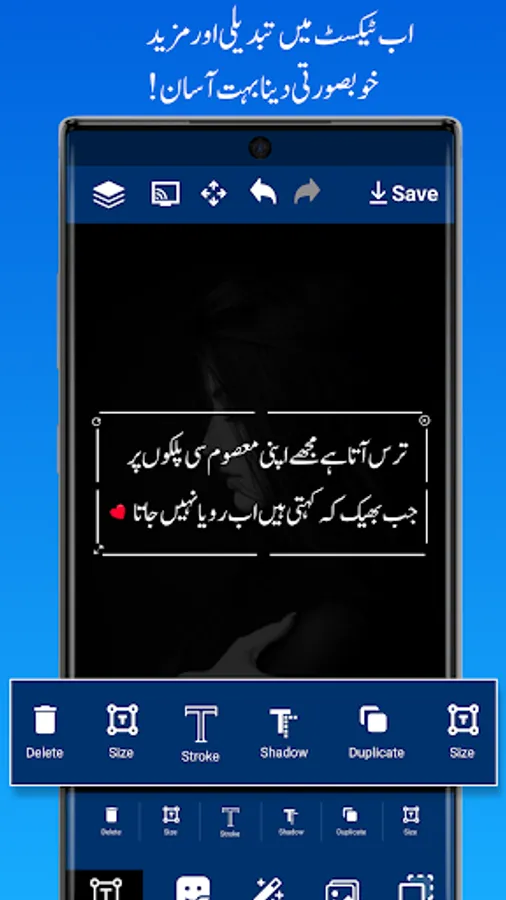★ Write Urdu text or add online urdu poetry/ urduShairi for your design posts.
