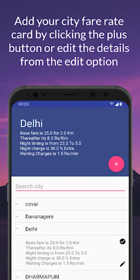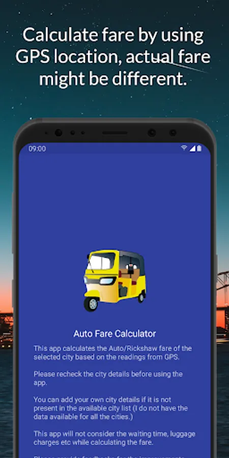 This app will calculate the Auto fare of the selected city based on the readings from GPS.