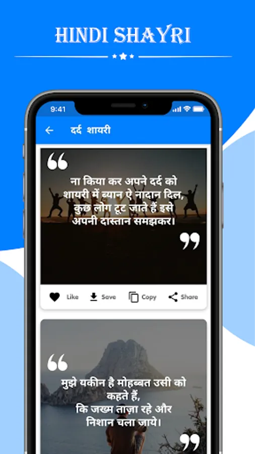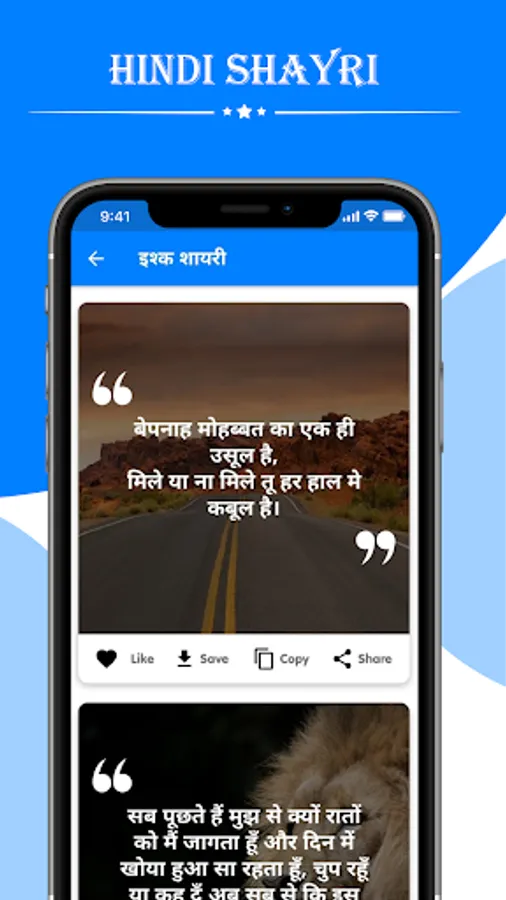 Shayari app in Hindi which has all types of Shayari which can be used as an SMS, WhatsApp status, Facebook status, Instagram captions or on any other social media. Presenting you Hindi Shayari