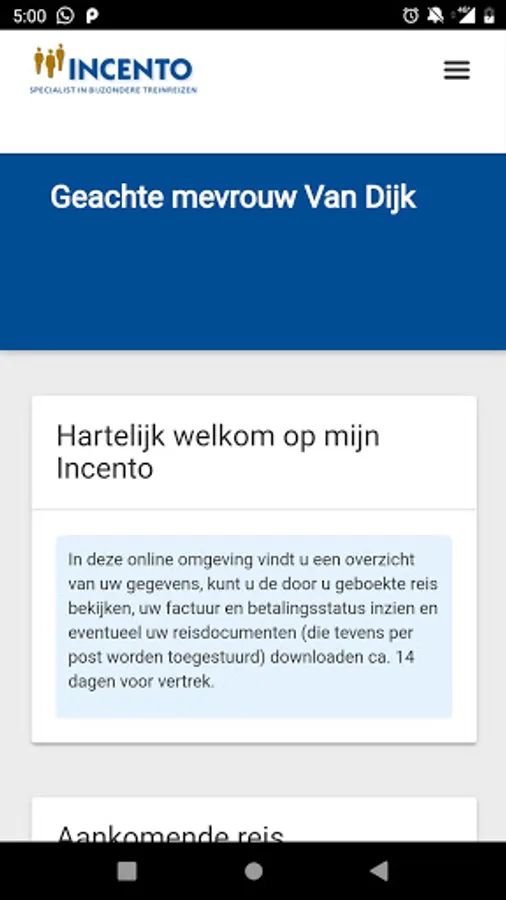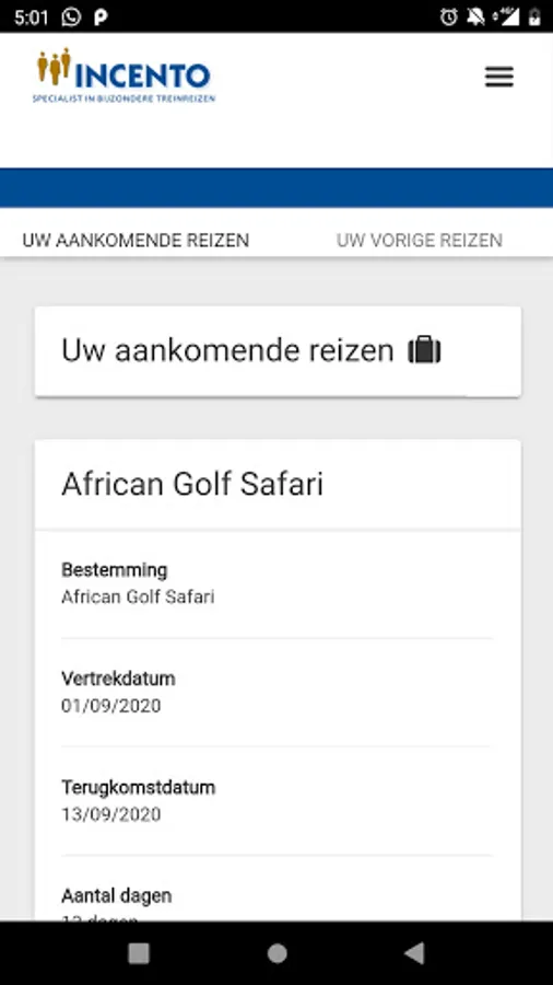 Met deze App heeft u altijd en overal toegang tot uw boekingsgegevens, reisgegevens, reispapieren en contactgegevens van Mijn Incento