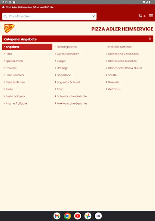 Pizza Adler Heimservice in Waldshut-Tiengen offers classic Turkish, Italian, Mexican, Indian and Chinese dishes. Have it delivered or pick it up yourself.