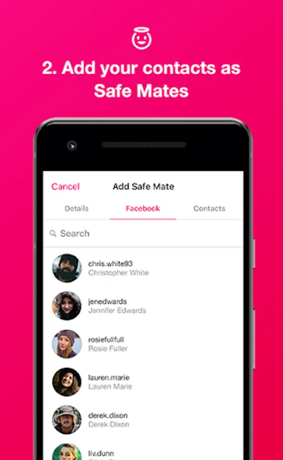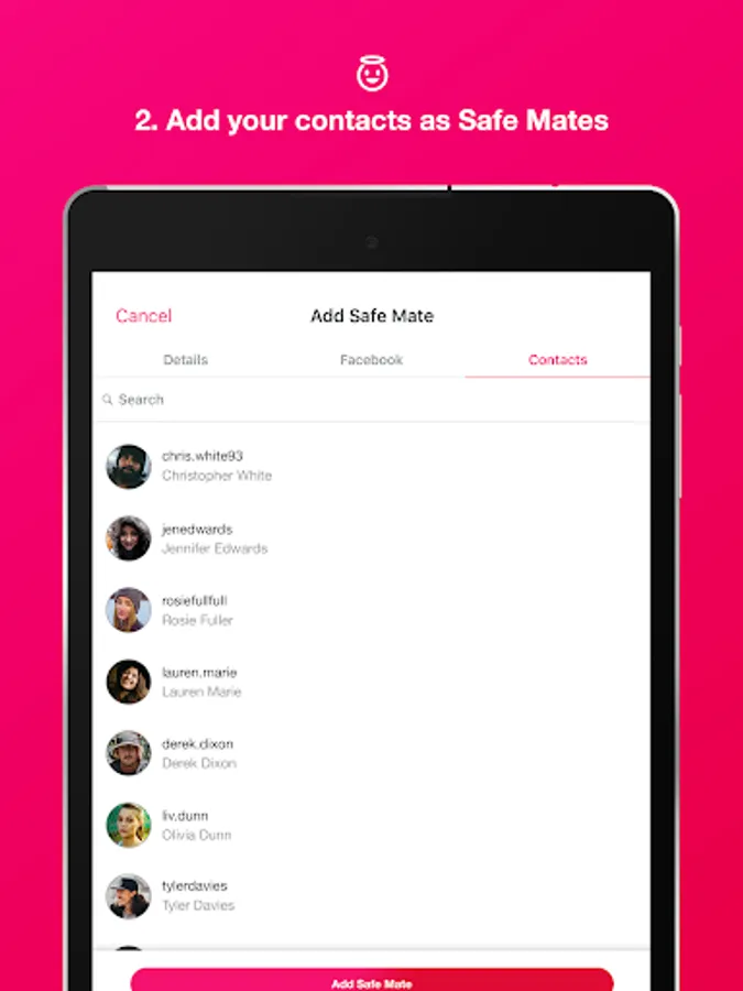 ★ Privately choose Safe Mates from your contacts