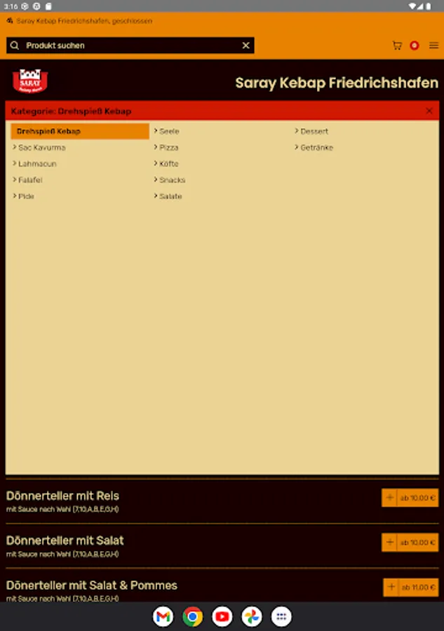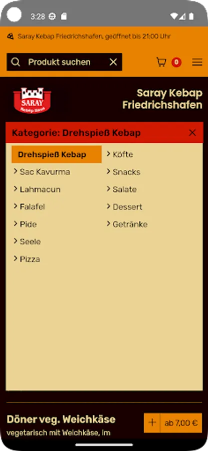 SARAY Kebap Haus in Friedrichshafen offers classic Turkish dishes - doner kebab, yufka, pide, lahmacun, falafel, pizza and fresh salads. For pickup or with delivery.