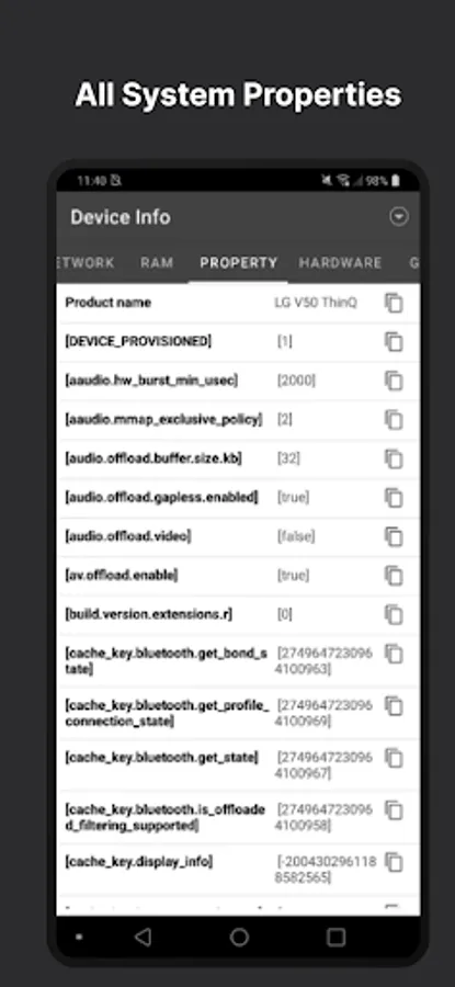 Shows all kinds of device-readable properties.