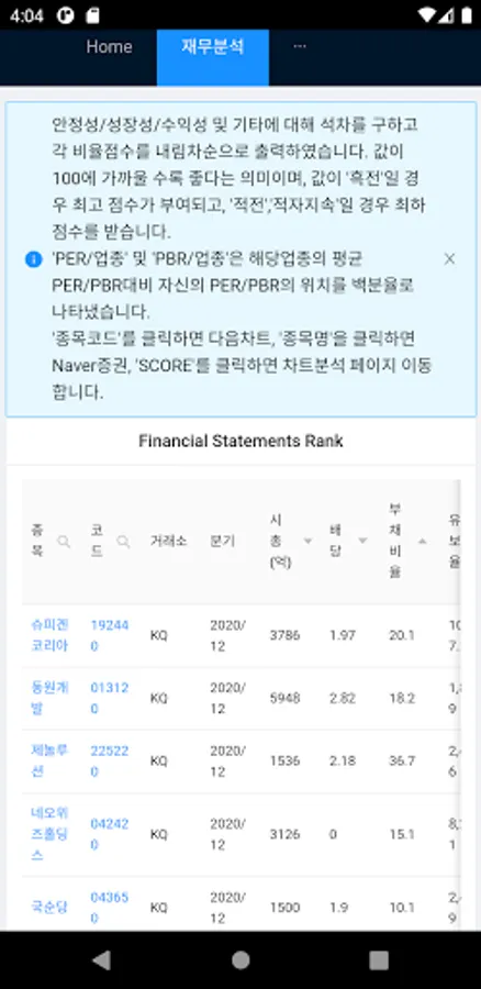 Financial Analysis-Based on financial indicators, each company is given a score and