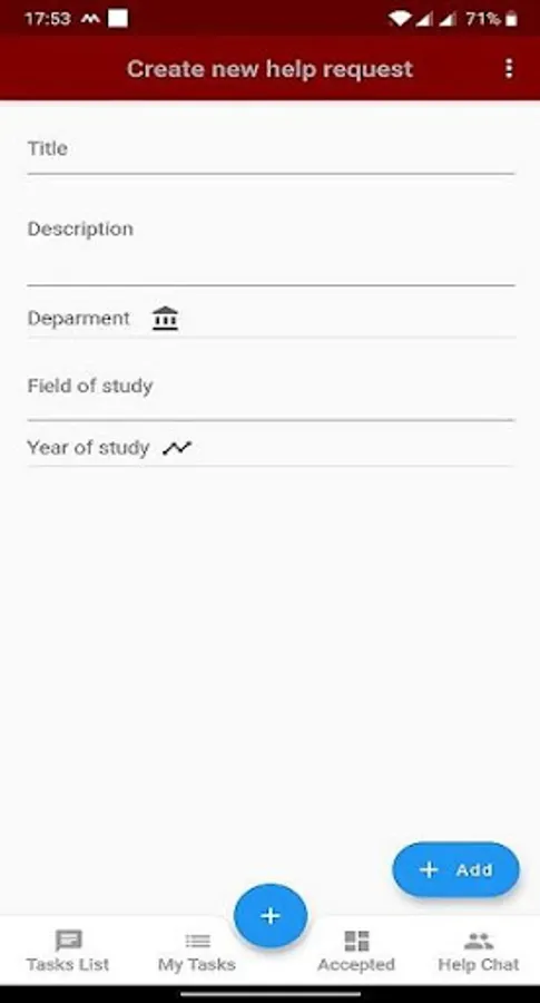 An application whose purpose is to support assistance between students of the Lodz University of Technology. A student in need of help can create a new task in which he determines what material he needs help with. The person willing to give her accepts the assignment, at the moment a chat is created through which students can request help details.