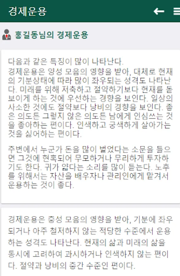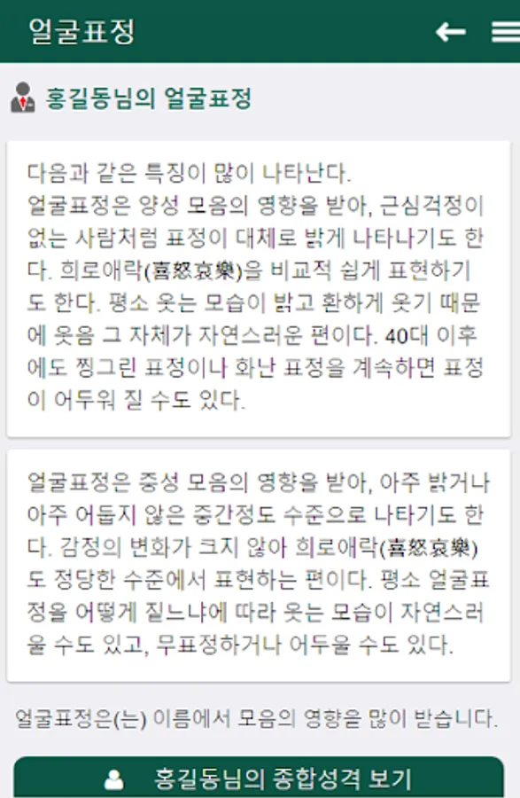 - We will inform you about your career path, economic management, thinking system, conversation method, behavioral characteristics, social life, facial expression, exercise and musical taste, and overall personality of your friends, lovers and acquaintances.