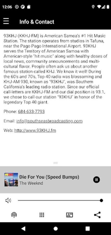 Listen to 93KHJ radio and Talanei news in American Samoa. It's American Samoa's Best Music Mix - right on your phone or tablet. See a schedule of your favorite radio personalities as well as the title and artist information for every song we play. You can also listen to our sister stations V103 (WVUV) and 104.7 The Beat (KKBT).