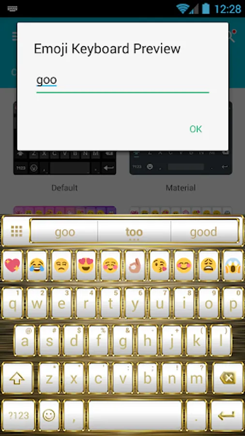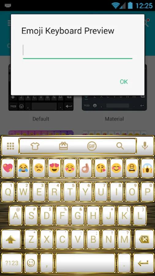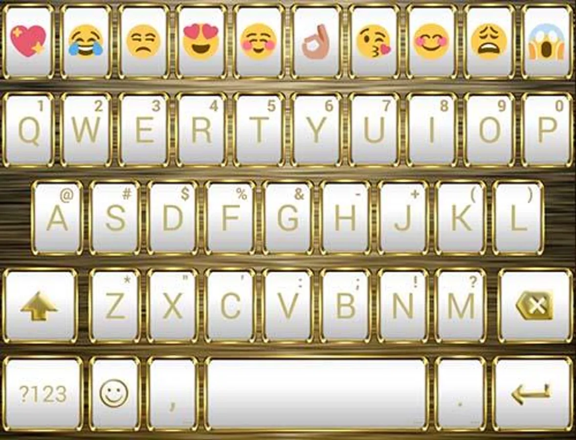 This is a theme with white pastel buttons adorned by a shiny metal frame of gold for Emoji Keyboard (Cute or Premium or KK version) application: please install Emoji Keyboard main program to use this theme.