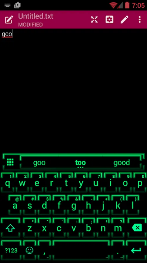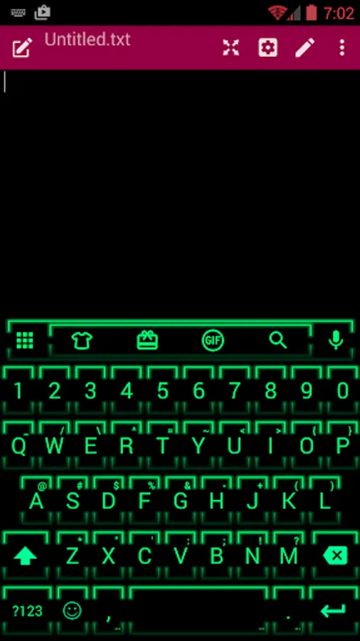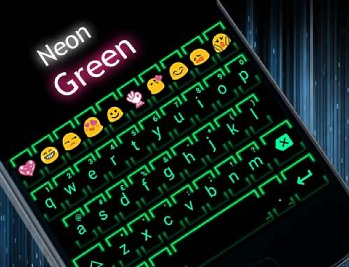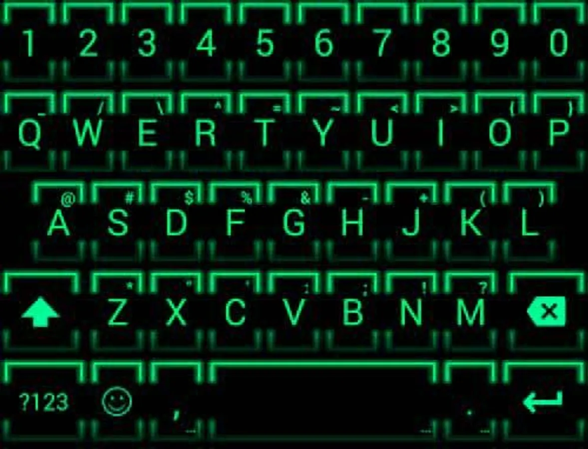 Neon green theme with black background and glowing aquamarine buttons for Emoji Keyboard (Cute or Premium or KK version) application: please install Emoji Keyboard main program to use this theme.